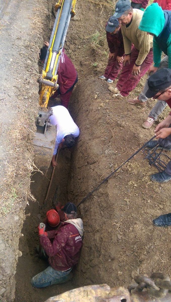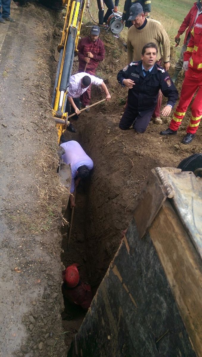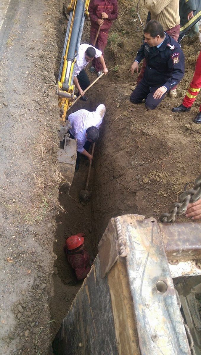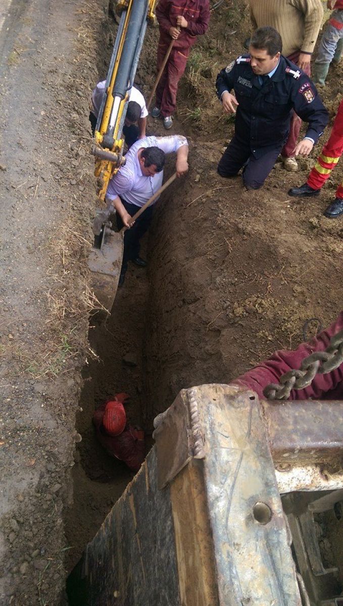 La fața locului a ajuns și primarul comunei Coșula, Mircia Acatrinei care s-a transformat și el în salvator. Primarul, doar în cămașă s-a băgat în șanț și cu ajutorul unei lopeți s-a luptat pentru a da pământul deoparte și pentru a-l salva pe bărbatul prins.