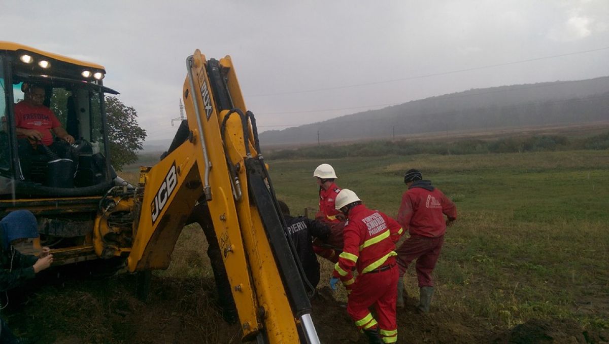Bărbatul care este salariat la firma Cornel’s Floor a fost prins de la brâu în jos de pământul care s-a surpat din cauza ploilor. Colegii lui au sunat la 112 și au chemat ajutoare.