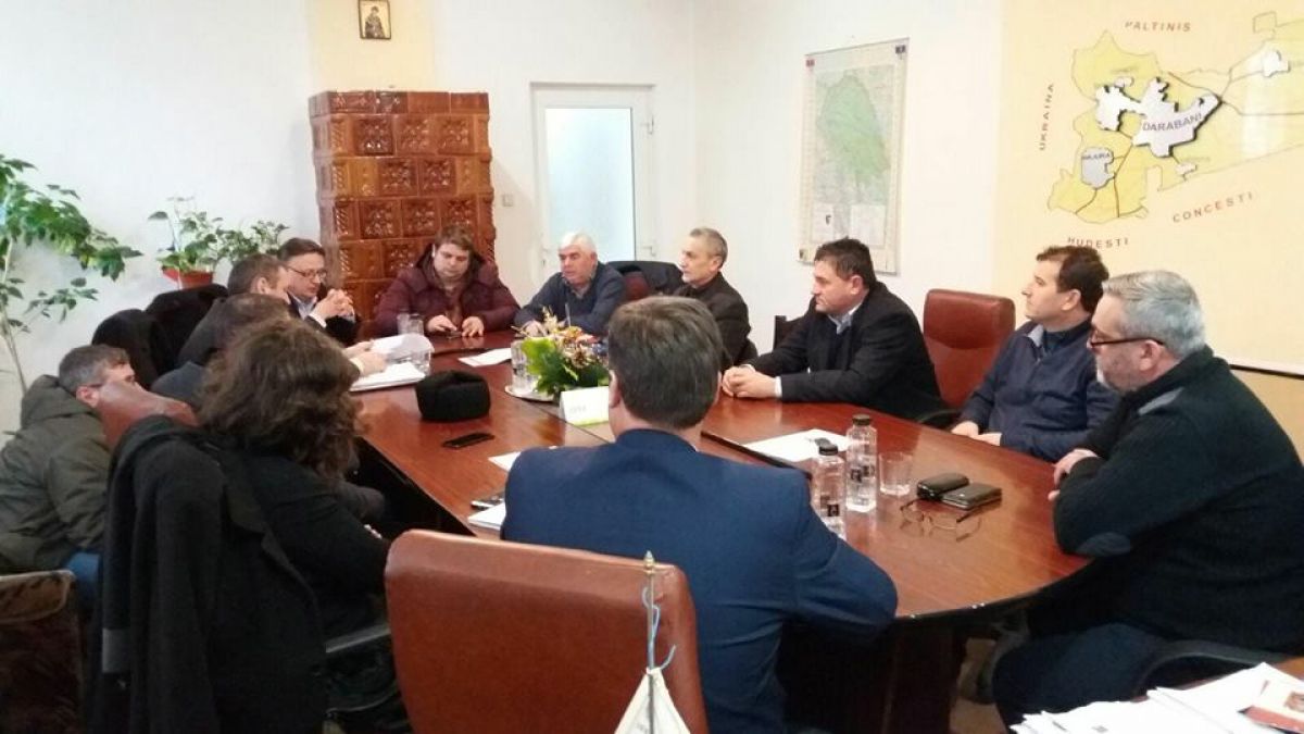 Acolo s-au întâlnit cu primari, respectiv Dinu Moroșanu de la Viișoara, Costel Nazare de la Concești, Liviu Hrimiuc de la Darabani și Costel Romanescu de la Păltiniș. De asemenea, au luat parte la ședința fulger de la Primăria Darabani și medici veterinari.