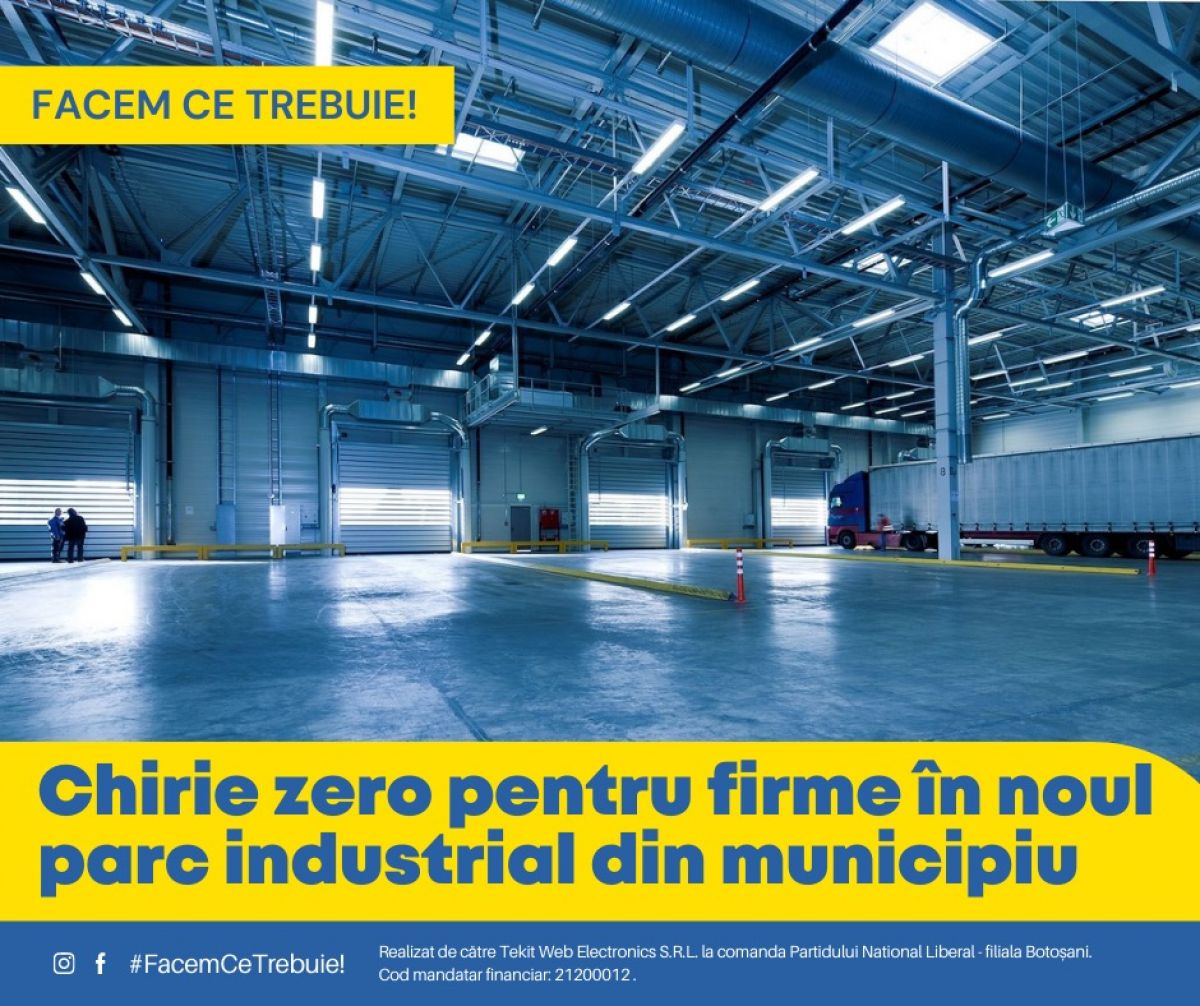 Un alt succes de marcă pentru municipiu este deschiderea Parcului Industrial de la Electromining, care va putea găzdui zeci de afaceri în cele mai bune condiții. Chiria pentru firmele care vor contracta spații în noul parc industrial vor fi zero până la finele anului 2021, acestea beneficiind în spații de toate utilitățile necesare desfășurării activității. Spre deosebire de incubatorul de afaceri, spațiile puse la dispoziția companiilor în parcul industrial pot fi mult mai generoase, de până la 2000 de metri pătrați, ceea ce permite dezvoltarea unor afaceri care să ofere locuri de muncă pentru sute de botoșăneni.