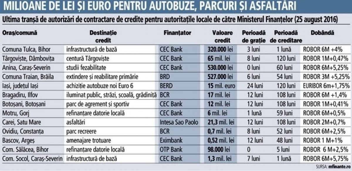 Iaşi, Târgovişte şi Botoşani sunt printre oraşele cu cele mai mari credite bancare pentru care au primit aviz de la Ministerul de Finanţe, arată documentele ministerului pentru datoria publică locală publicate în premieră pe datoriepublica.mfinante.gov.ro.