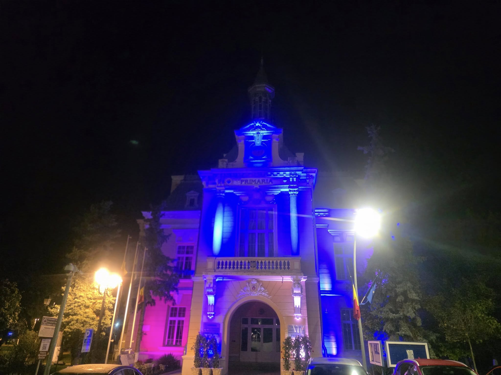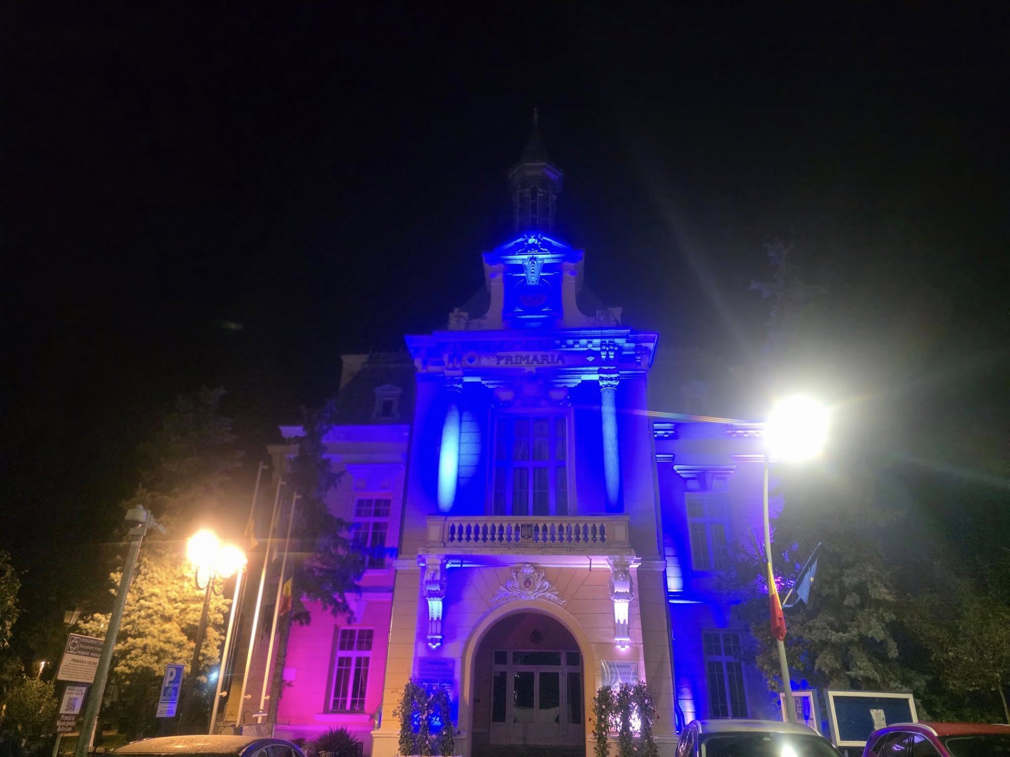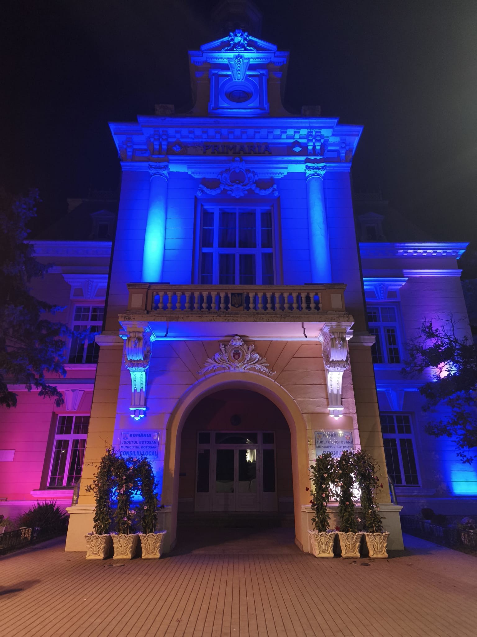 În municipiul reședință a fost iluminată Primăria Botoșani în culorile roz și bleu.