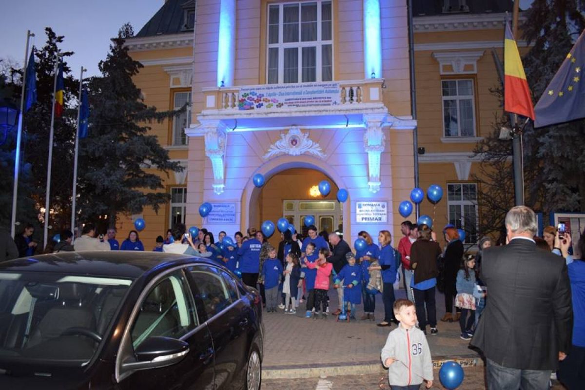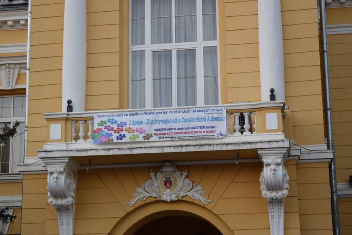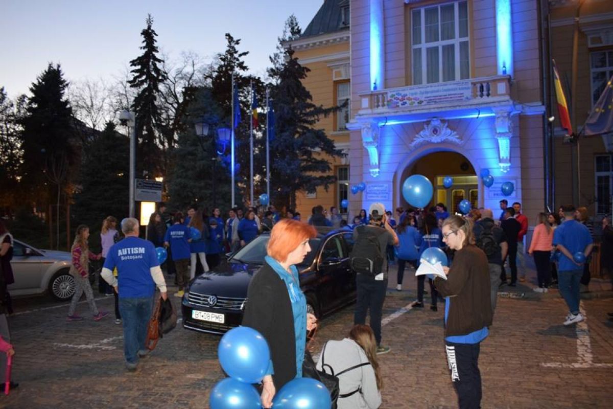 Evenimentul organizat de Asociația Părinților Copiilor cu Autism și Primăria Botoșani a constat în colorarea sediului municipalității în culoarea albastră și lansarea de baloane.