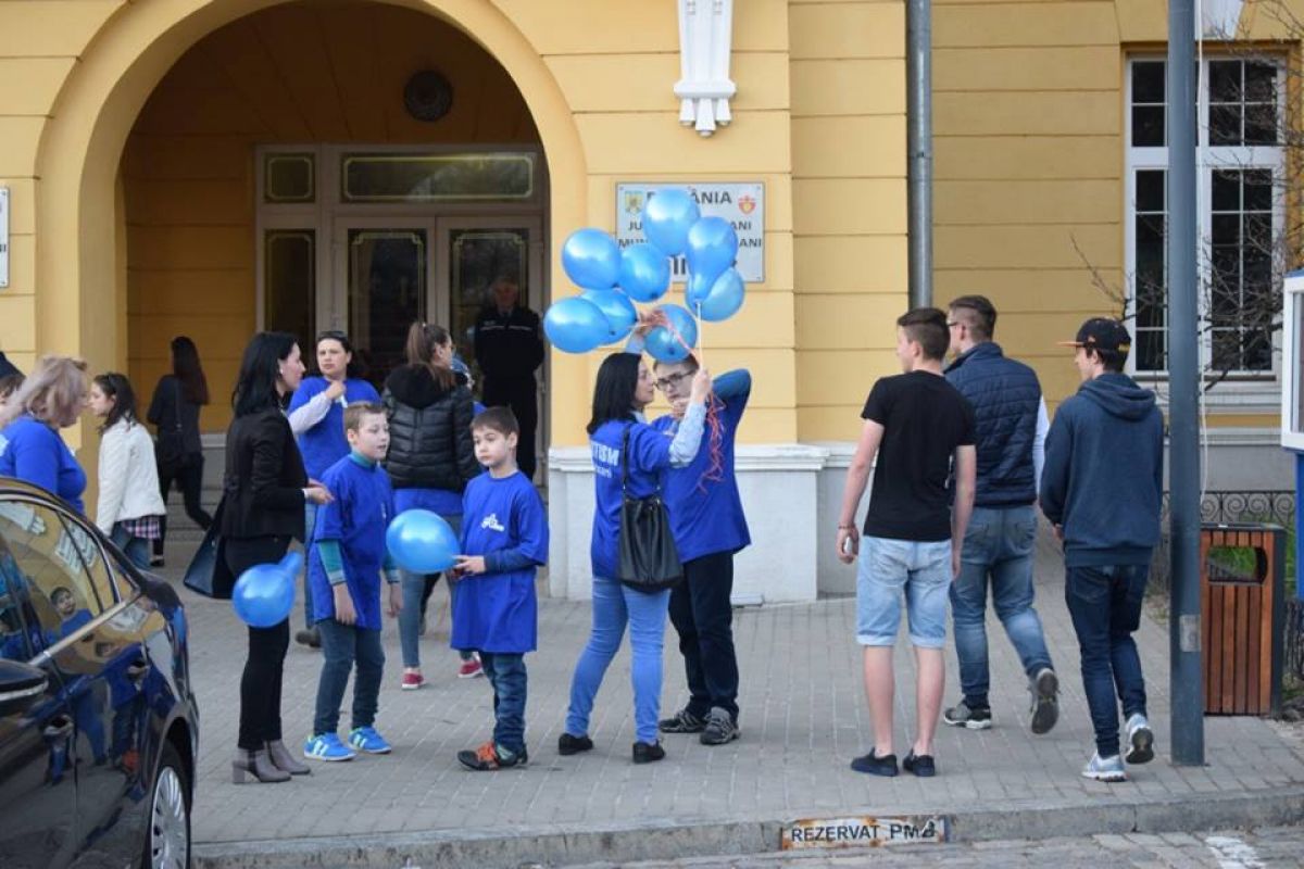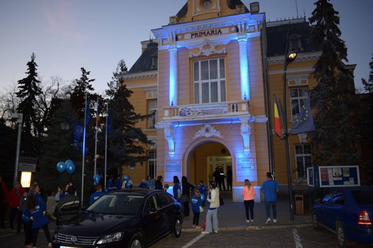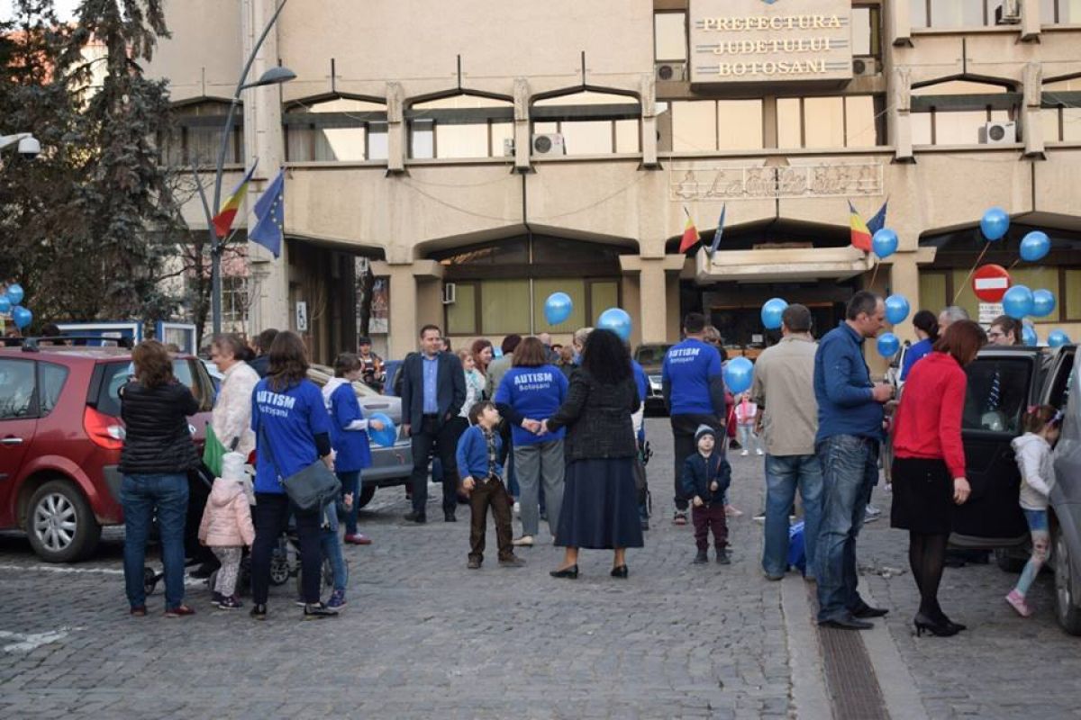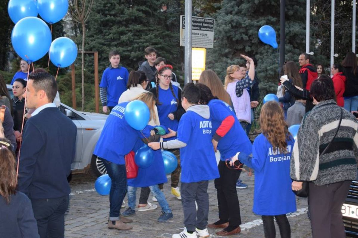 Evenimentul organizat de Asociația Părinților Copiilor cu Autism și Primăria Botoșani a constat în colorarea sediului municipalității în culoarea albastră și lansarea de baloane.