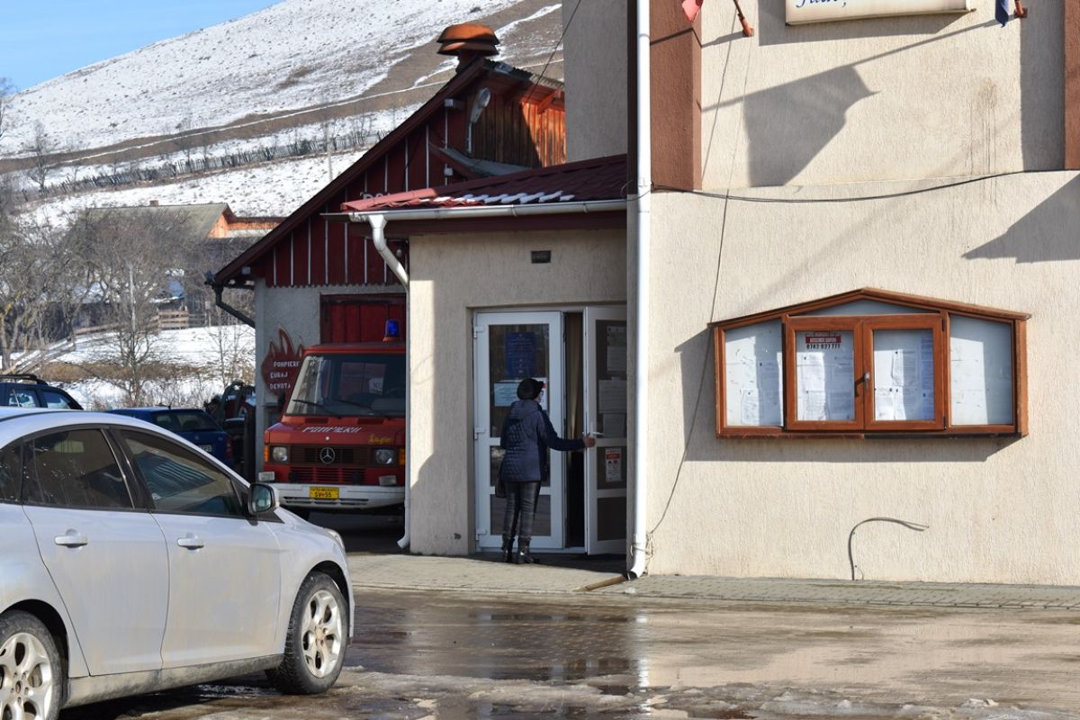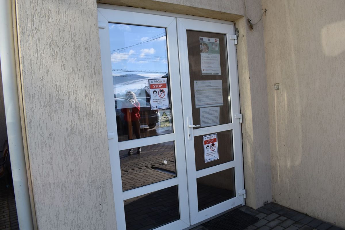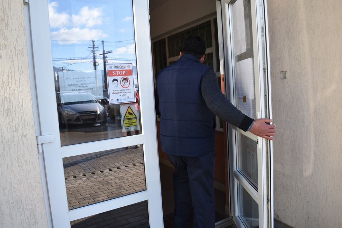 În aceeași clădire cu Primăria Vatra Moldoviței se află și Poliția. Încercăm și acolo. Degeaba! Ușa și aici este închisă. Nici Poliția nu-i acasă...