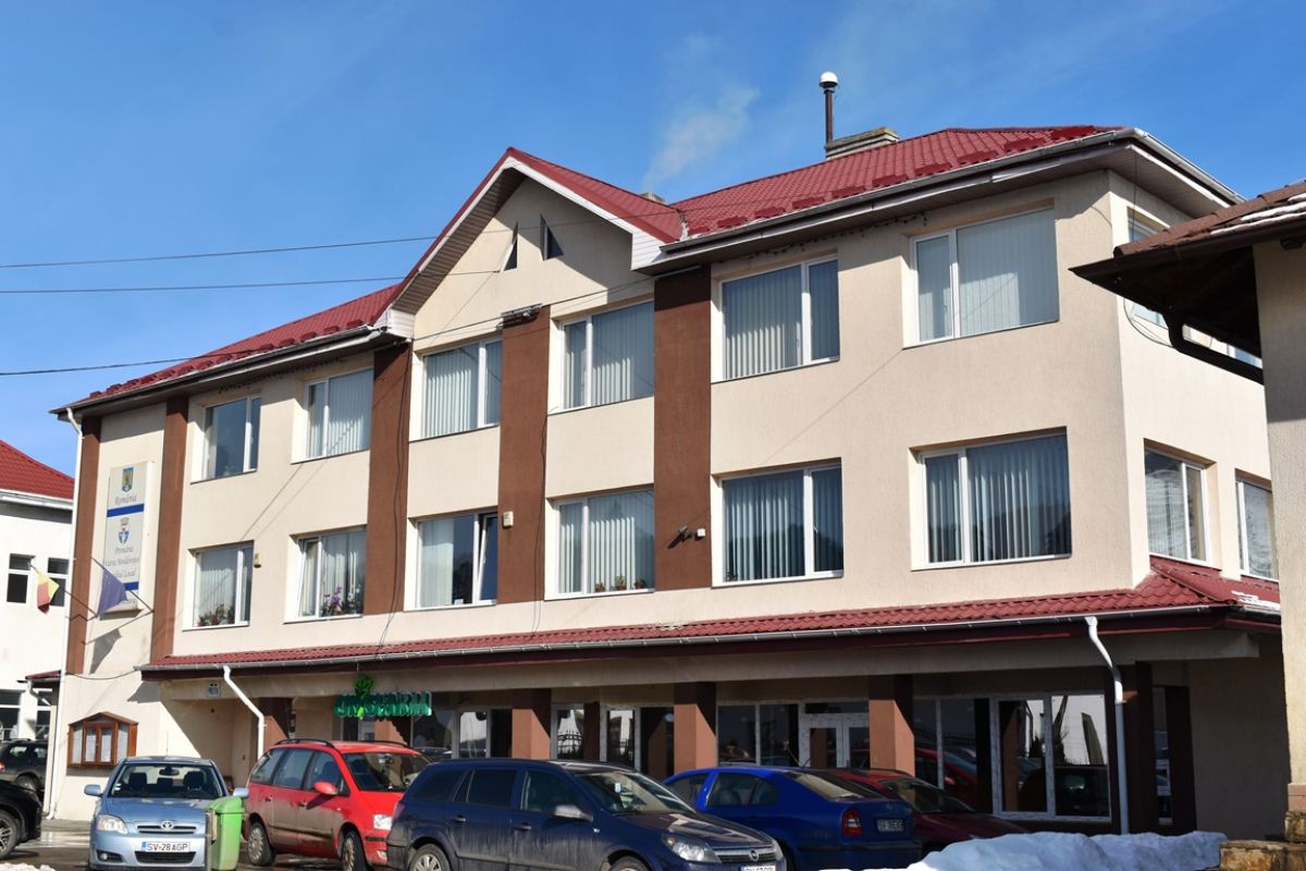 Așa cum e moda de câțiva ani și, în comuna din Bucovina, Primăria pare a fi cea mai impunătoare clădire, contrastează puternic cu noroiul, bălțile și gropile din imediata apropiere.