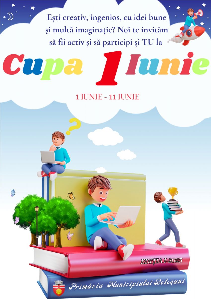 De Ziua Internațională a Copilului se va deschide și Cupa 1 Iunie, cadru în care elevii vor expune în Parcul Primăriei panouri reprezentative ale unităților de învățământ de care aparțin. Concursul va avea loc pe 3 categorii: Grădiniță, Gimnazial (cl. I - VIII) și Liceal. Pe fiecare grupă, panourile care vor obține cele mai multe aprecieri vor fi declarate câștigătoare și premiate! Votul va fi închis pe data de 11 iunie!