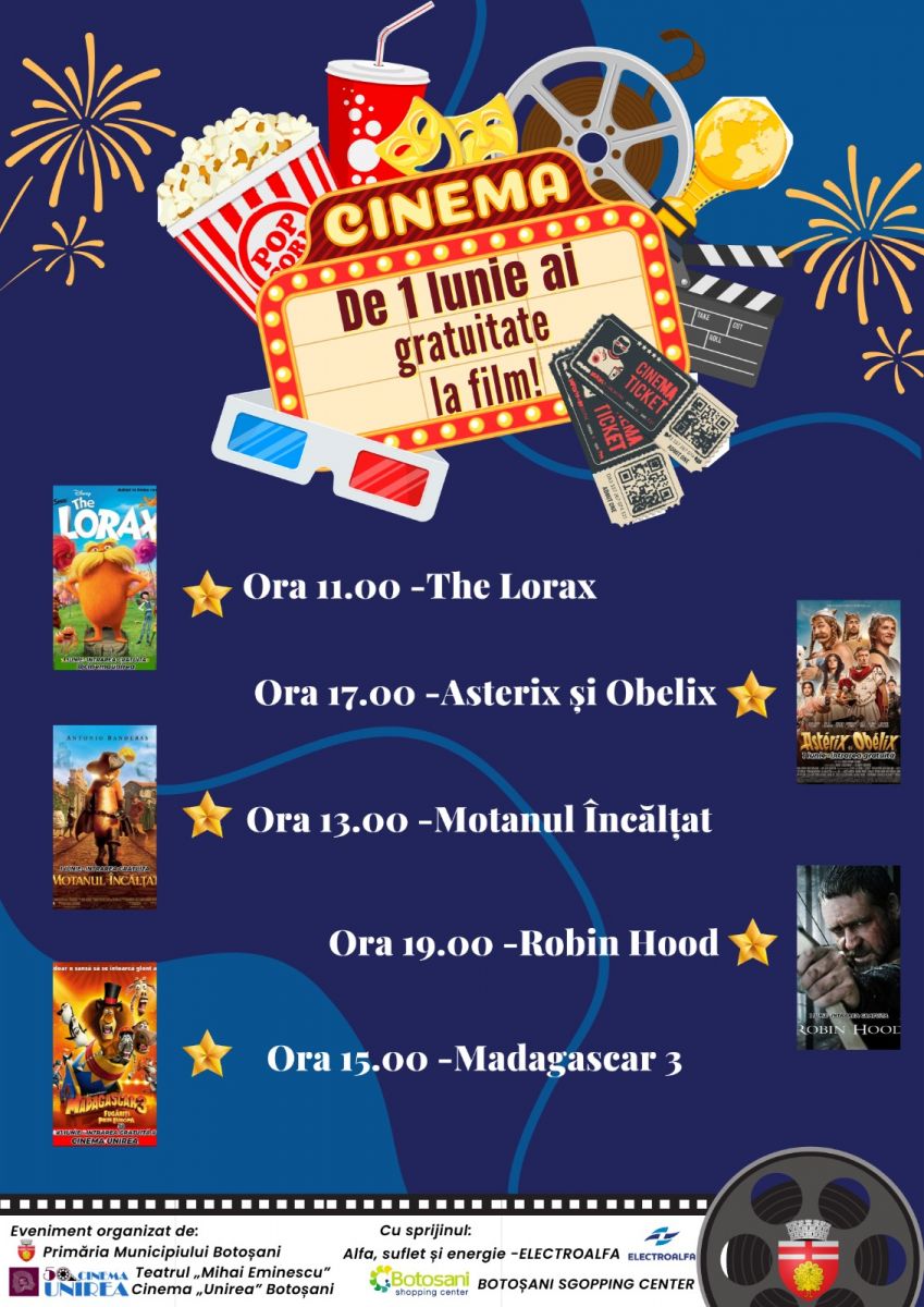 Cinema Unirea pune la dispoziția copiilor și însoțitorilor cinci proiecții, începând cu ora 11:00. Intrarea va fi gratuită!