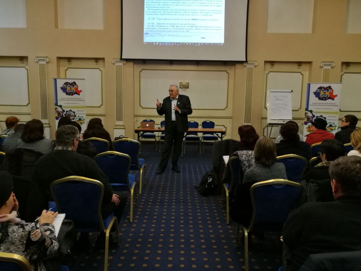 Seminarul cu titlul ”Fiscalitatea locală, registrul agricol și urbanismul ca un tot unitar” a fost susținut de domnul Emil Drăghici, președintele Asociației Comunelor din România şi a avut ca scop furnizarea de informații actualizate în aplicarea legislației specifice, pe fondul perfecționării profesionale și dezvoltării abilităților în ceea ce privește exercitarea atribuțiilor specifice personalului din administrația publică locală.