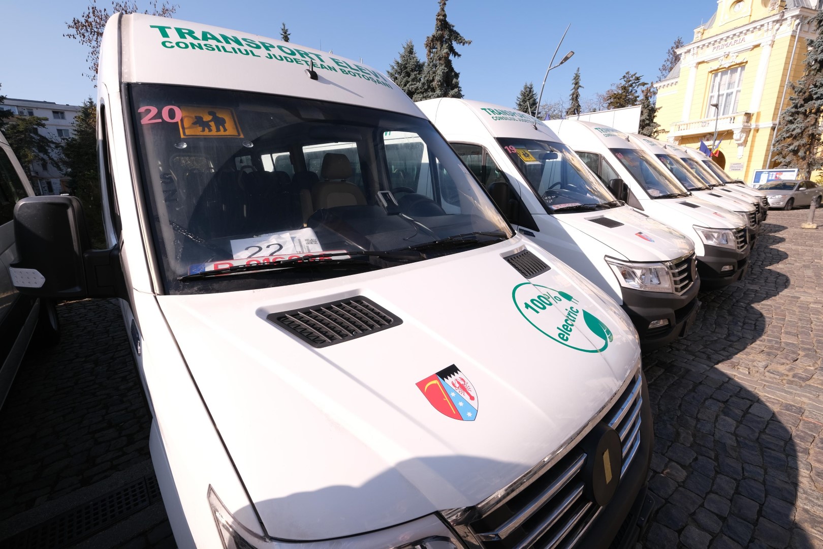 Consiliul Județean Botoșani a început procesul de recepție a primului lot de nouă microbuze școlare electrice din cele 26 achiziționate în prima etapă a proiectului finanțat prin PNRR.