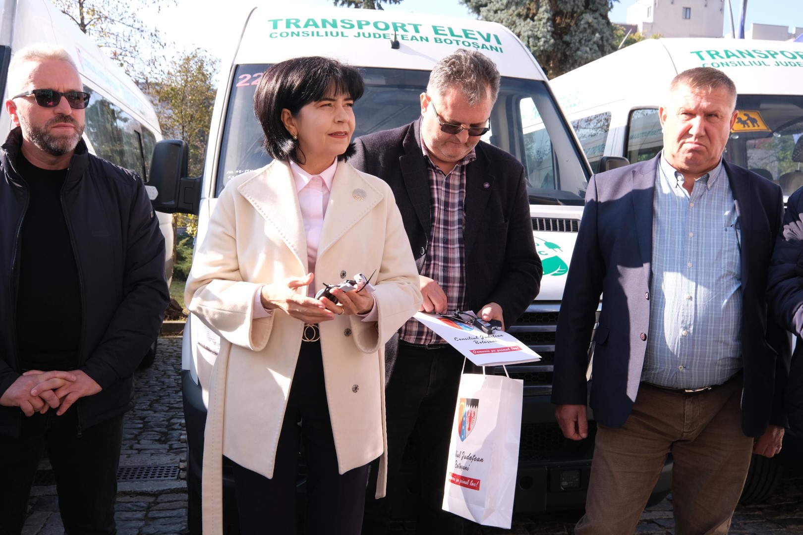 „Este un nou moment administrativ important pentru județul nostru. Astăzi demarăm procedurile de recepție a primului lot de microbuze școlare electrice pe care Consiliul Județean Botoșani le-a achiziționat în cadrul unei finanțări atrase din PNRR. Vorbim de 9 microbuze școlare, care vor ajunge la tot atâtea școli. Totodată, le-am alocat comunelor care au cea mai mare nevoie de microbuze școlare pentru a asigura prezența copiilor la ore. Este un proiect de suflet și de aceea am făcut toate demersurile necesare pentru ca din economiile rezultate din prima licitație să mai achiziționăm încă 10 microbuze școlare electrice. Deci, în total, vom avea în județ 36 de microbuze școlare electrice, la care se adaugă alte 18 microbuze școlare hibride pentru care am semnat contractul de livrare săptămâna trecută. Valoarea totală a acestor microbuze se ridică la peste 11 milioane de euro”