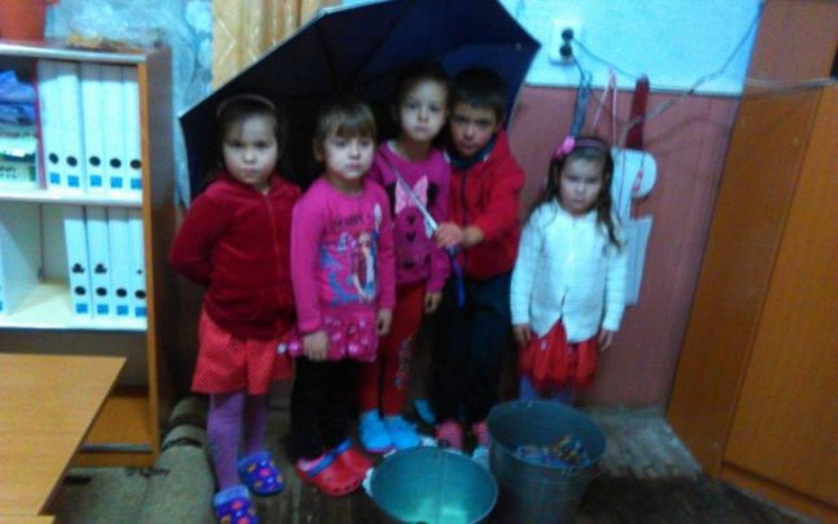 „Trebuie să folosim umbrela pentru că plouă în clasă. Tabla de pe acoperişul grădiniţei este spartă, iar autorităţile locale ne promit de mai bine de opt ani de zile că ne vor ajuta, însă am ajuns să ţinem copiii în ploaie”, se plânge educatoarea Mihaela Zaitz.