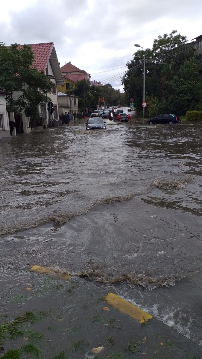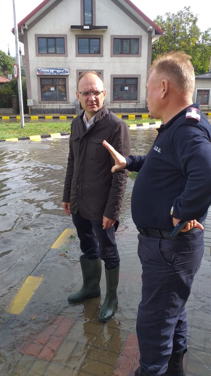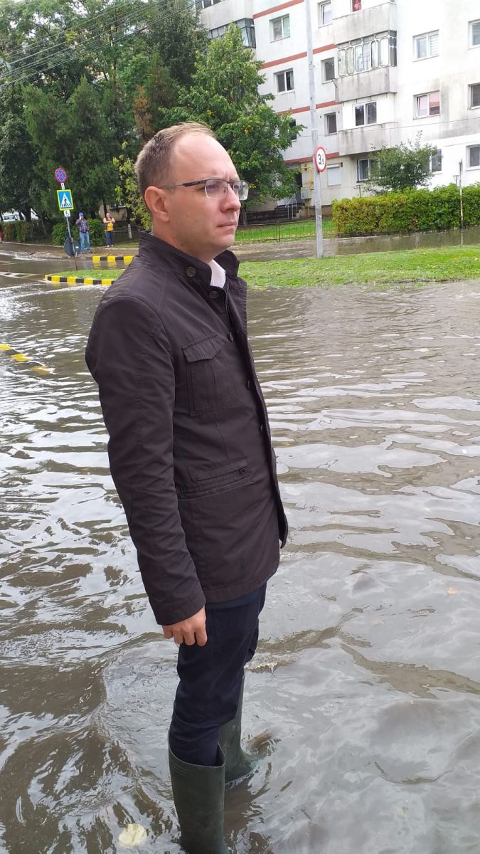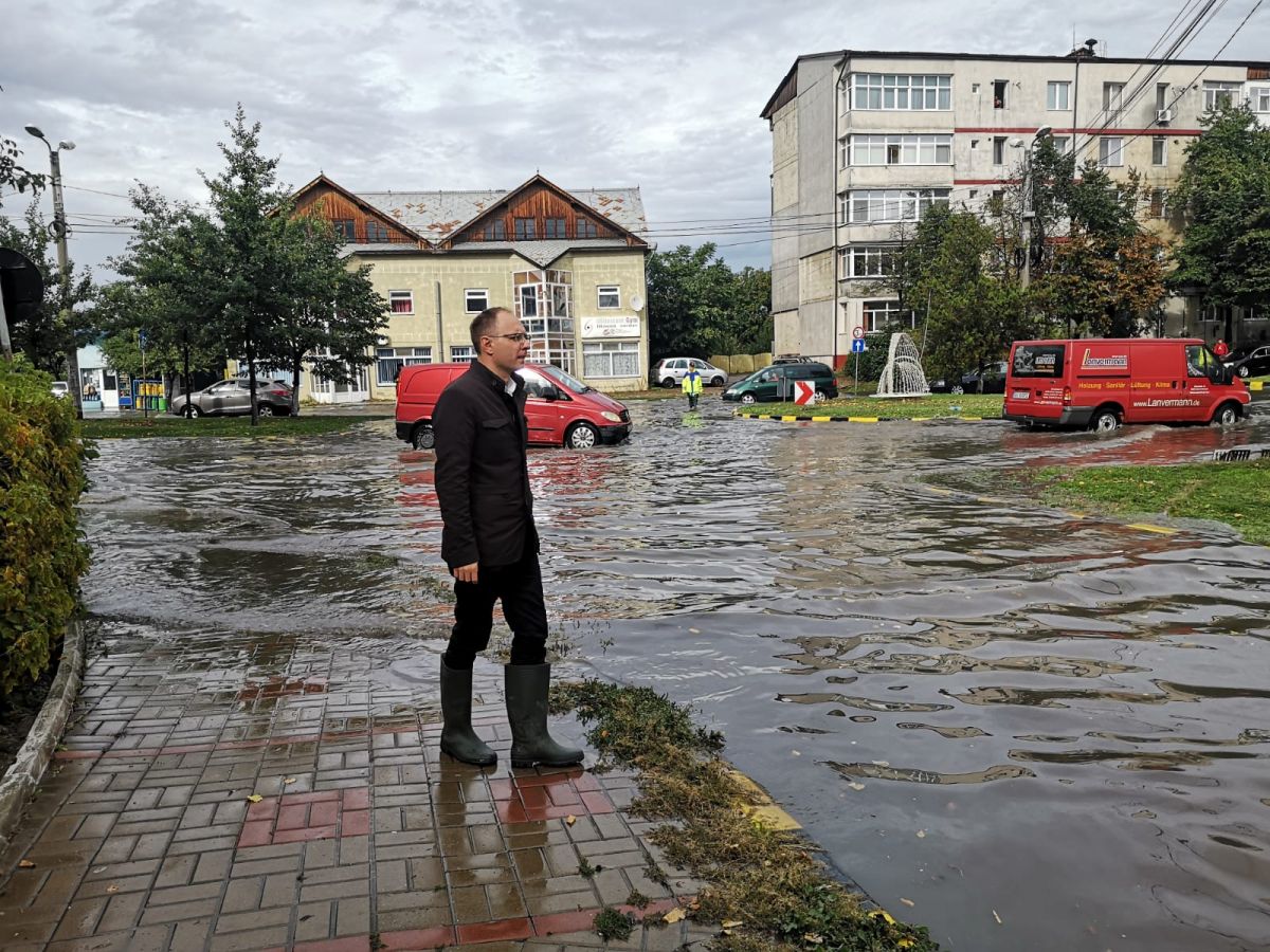 Primarul ales Cosmin Andrei pe străzile inundate ale orașului: Este nevoie urgentă de refacerea infrastructurii de colectare a apei pluvialeGALERIE FOTO
