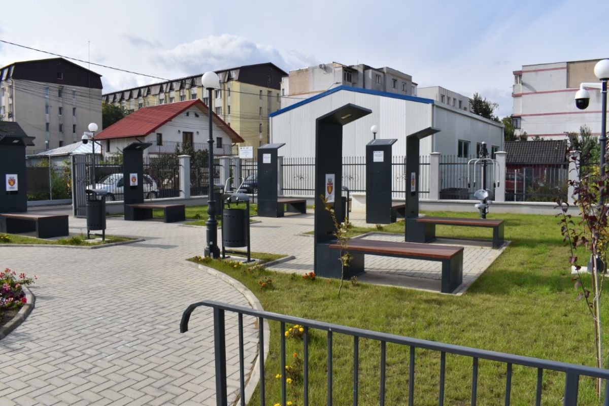Este vorba despre o zonă amenajată pe o suprafață de 990 mp și include echipamente de sport, spații de relaxare, zonă verde și alei pietonale, bănci smart.
