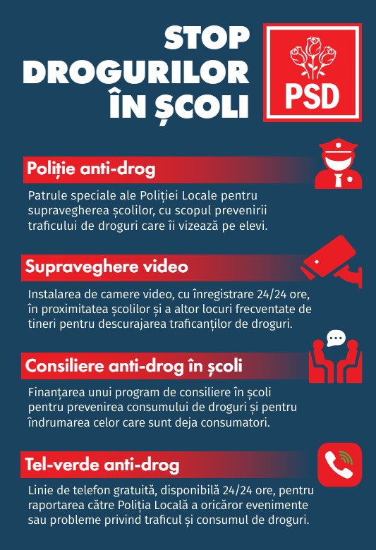 Primarul Cosmin Andrei a explicat că programul său va avea două componente majore: una combativă îndreptată împotriva traficanților de droguri și una preventivă și de sprijin pentru elevii care ar putea deveni sau sunt deja victime ale acestui flagel.