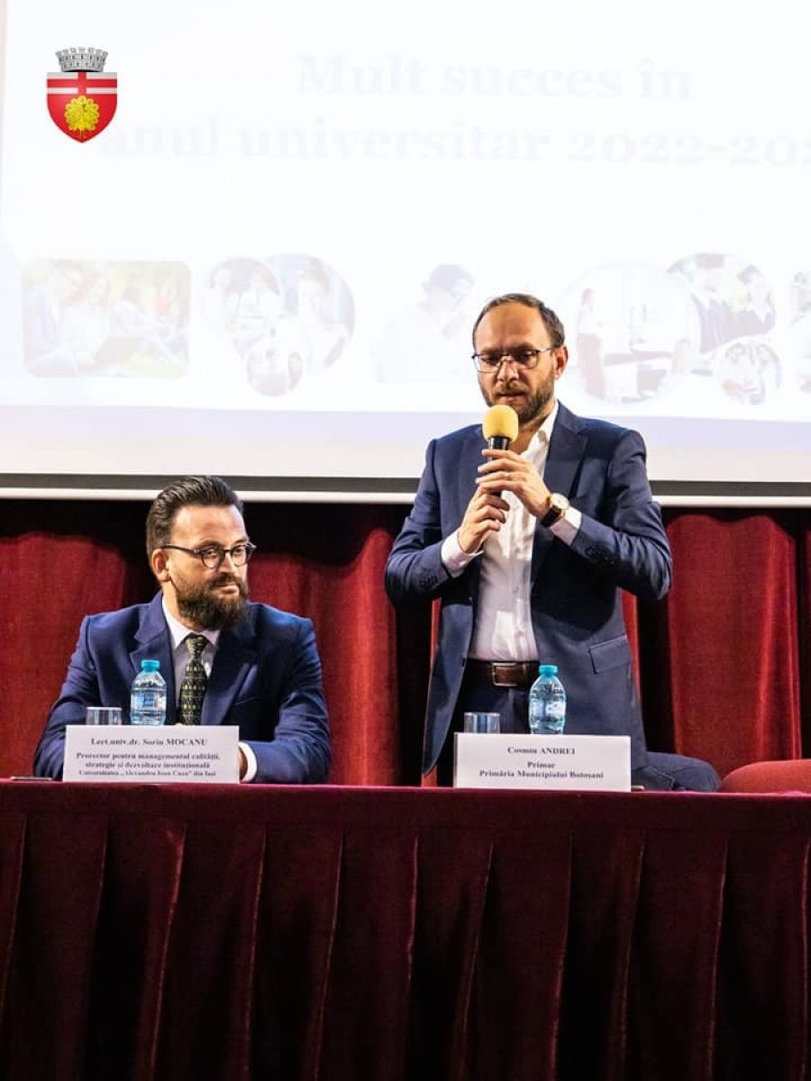 ”Când am pus bazele filialei Universității „Alexandru Ioan Cuza” (UAIC) de la Botoșani, am fost încrezător, primind susținere din partea domnului prof. univ. dr. Tudorel Toader, a doamnei președinte de Consiliu Județean Federovici Doina Elena și a domnului Ministru al Muncii, Marius Constantin Budai. Mi-am dorit să ofer posibilitatea tinerilor din județul nostru să aibă parte de studii de calitate, aici, la ei acasă”, a transmis Cosmin Andrei, primarul municipiului Botoșani.
