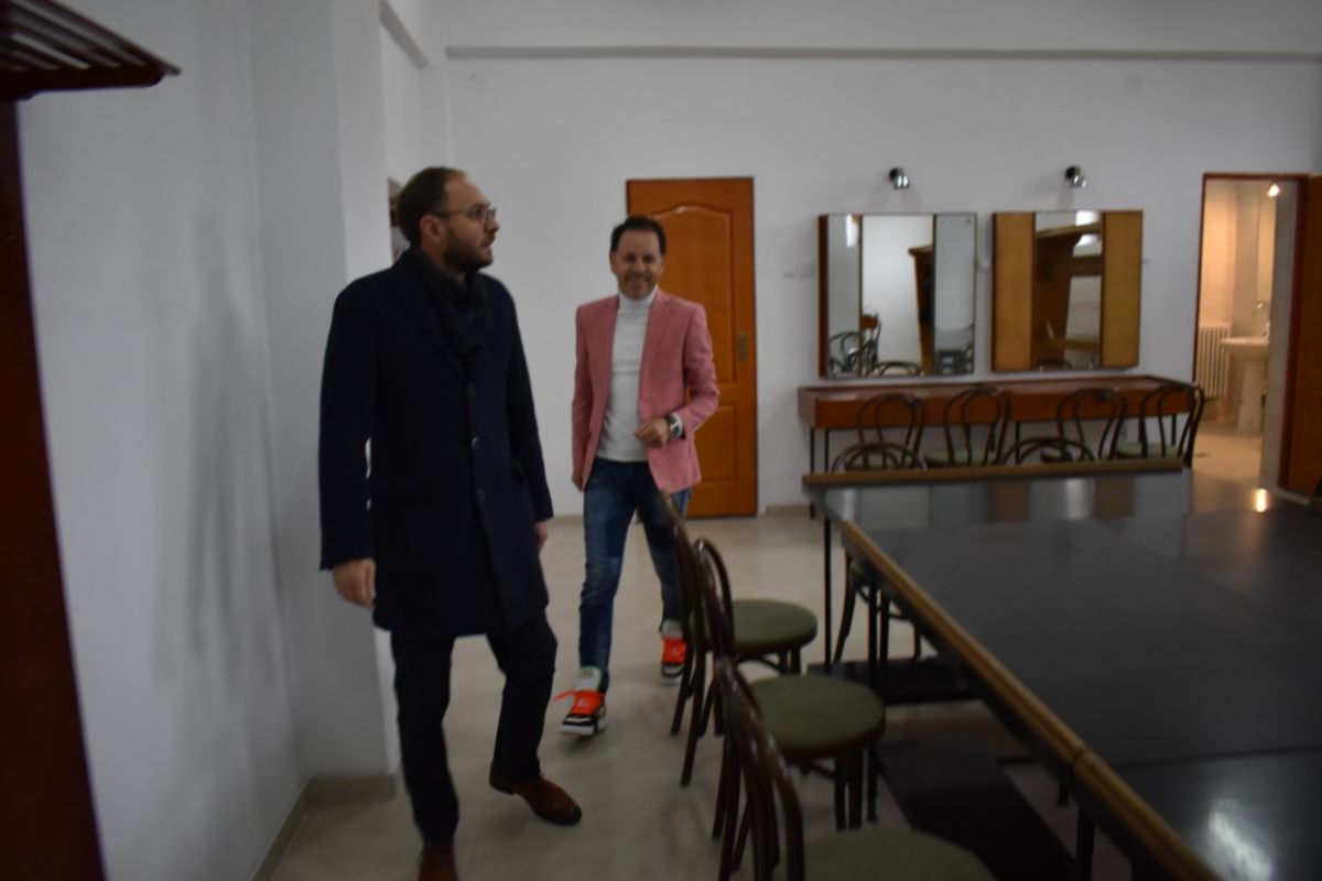 Primarul Cosmin Andrei a ajuns într-o dimineață la sediul Filarmonicii unde a discutat cu directorul Mirel Manea care se afla cu impresarul artistic, Liviu Sorinel. A salutat și angajații instituției de cultură și a fost pus la curent cu planurile conducerii.