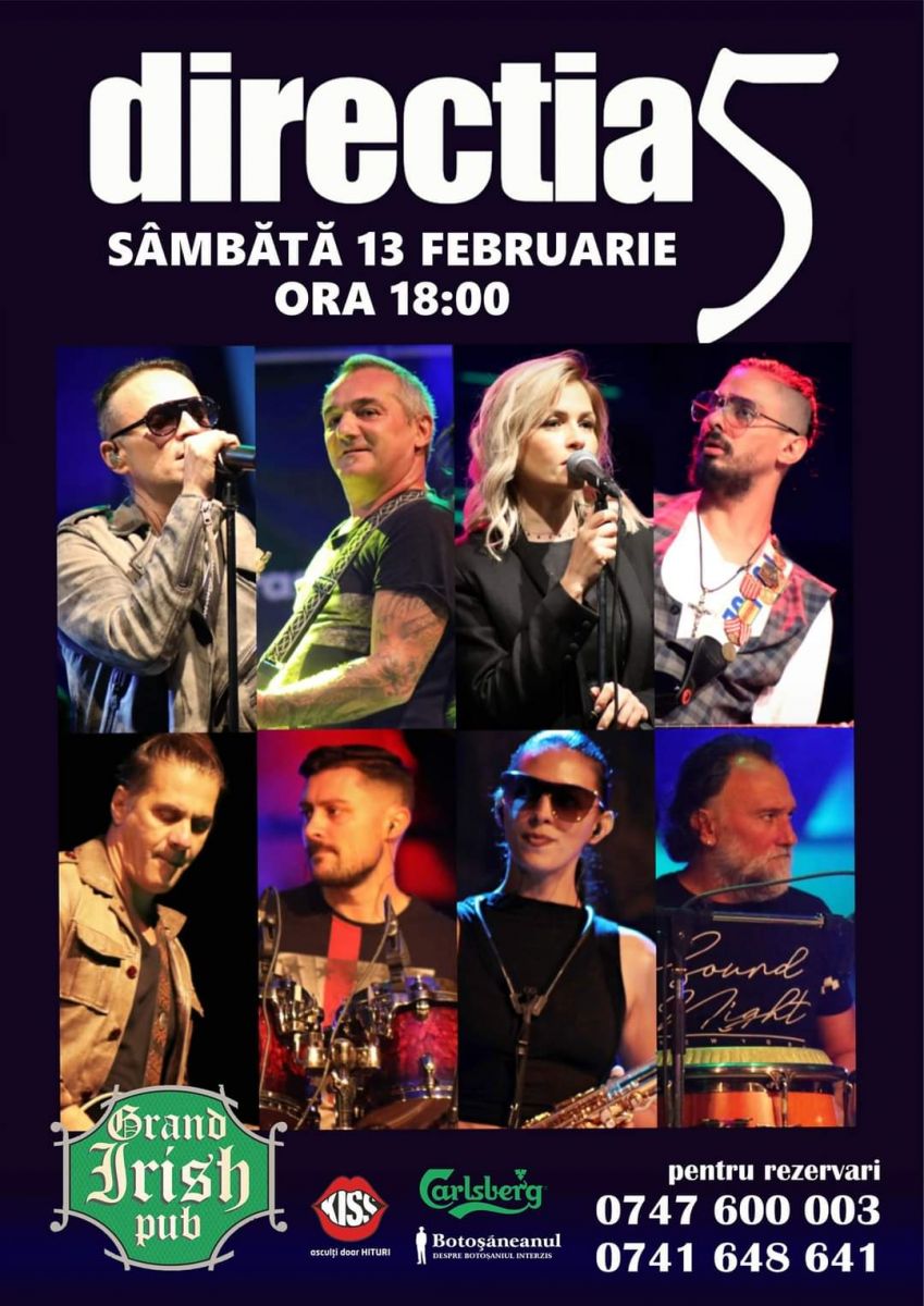 Iar seria evenimentelor continuă și în week-end-ul următor. Pe 13 februarie 2021, urmează să ajungă la Botoșani celebra formație Direcția 5. Concertul va începe la ora 18:00, iar biletul costă 70 de lei.