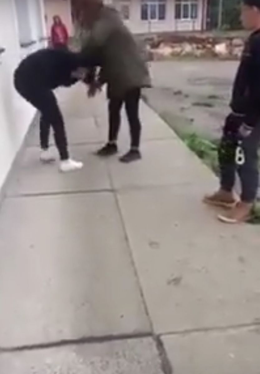 Un videoclip cu două adolescente care se loveau în curtea școlii a devenit viral pe rețelele de socializare.