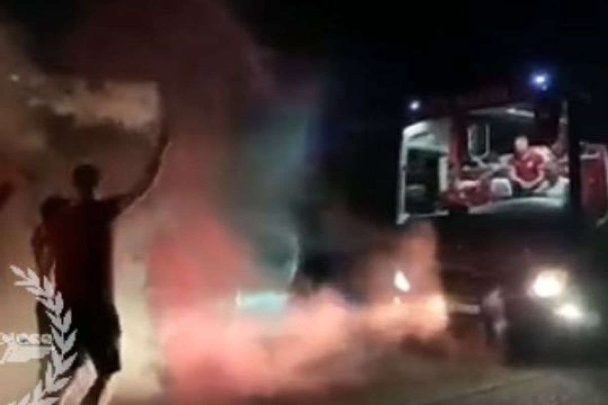 Sâmbătă seara, autocarul Rapidului a fost întâmpinat de câțiva suporteri rapidiști din Suceava. Aceștia au aprins torțe și fumigene și au cântat preț de câteva minute în fața jucătorilor, relatează GSP.ro.
