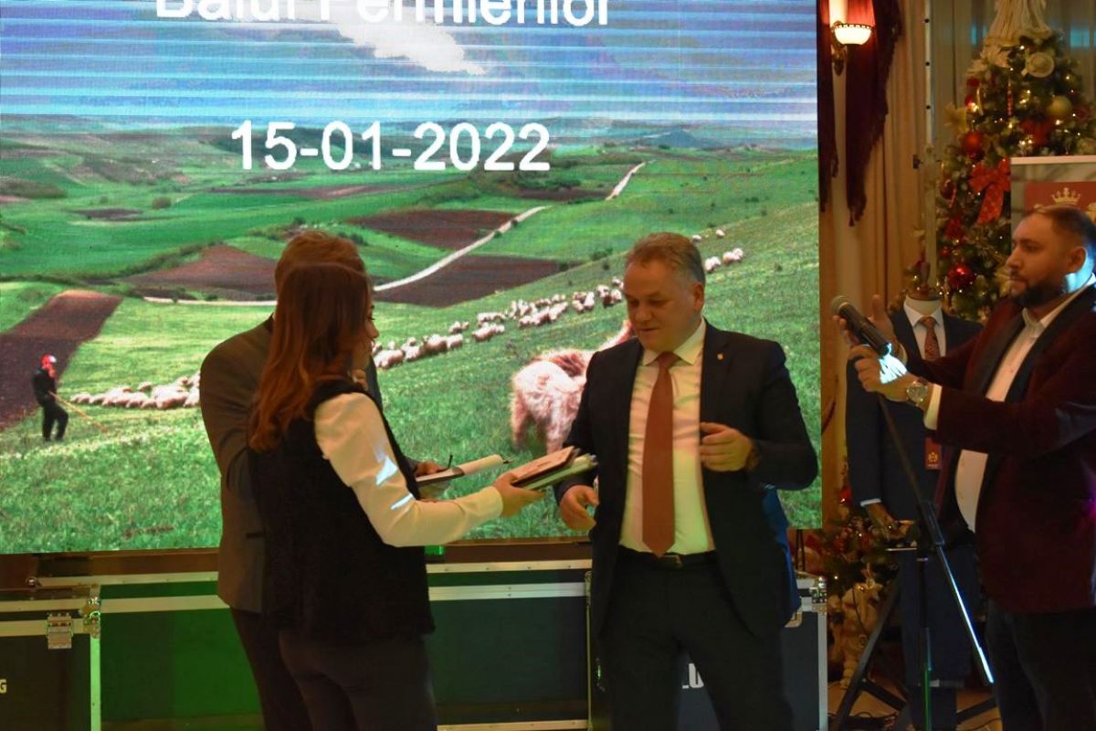 Cu 293 de oi și 509 puncte, Constantin Palade din Bătrânești, care deține un PFA, a fost desemnat ”Fermierul anului 2021”. Pe lângă o drujbă, a primit în dar și un uriaș chimir pe care era scris ”Fermierul Anului”.