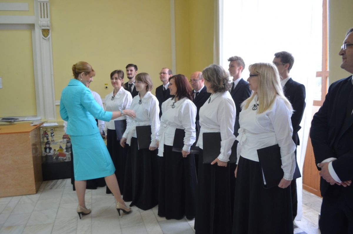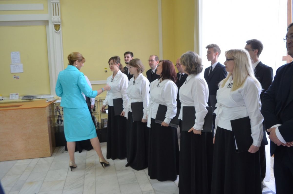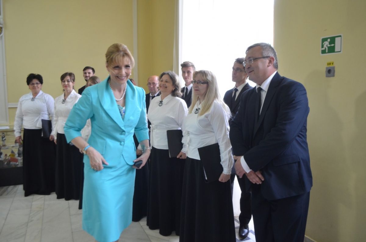 La plecarea de la muzeu, Alteței Sale Regale i s-a pregătit o surpriză din partea Coralei Lira care a așteptat-o în hol. După ce a ascultat Imnul Regal, Principesa Maria le-a mulțumit coriștilor : ”Ați fost minunați” pentru ca mai apoi să dea mâna cu fiecare. (G.E.)