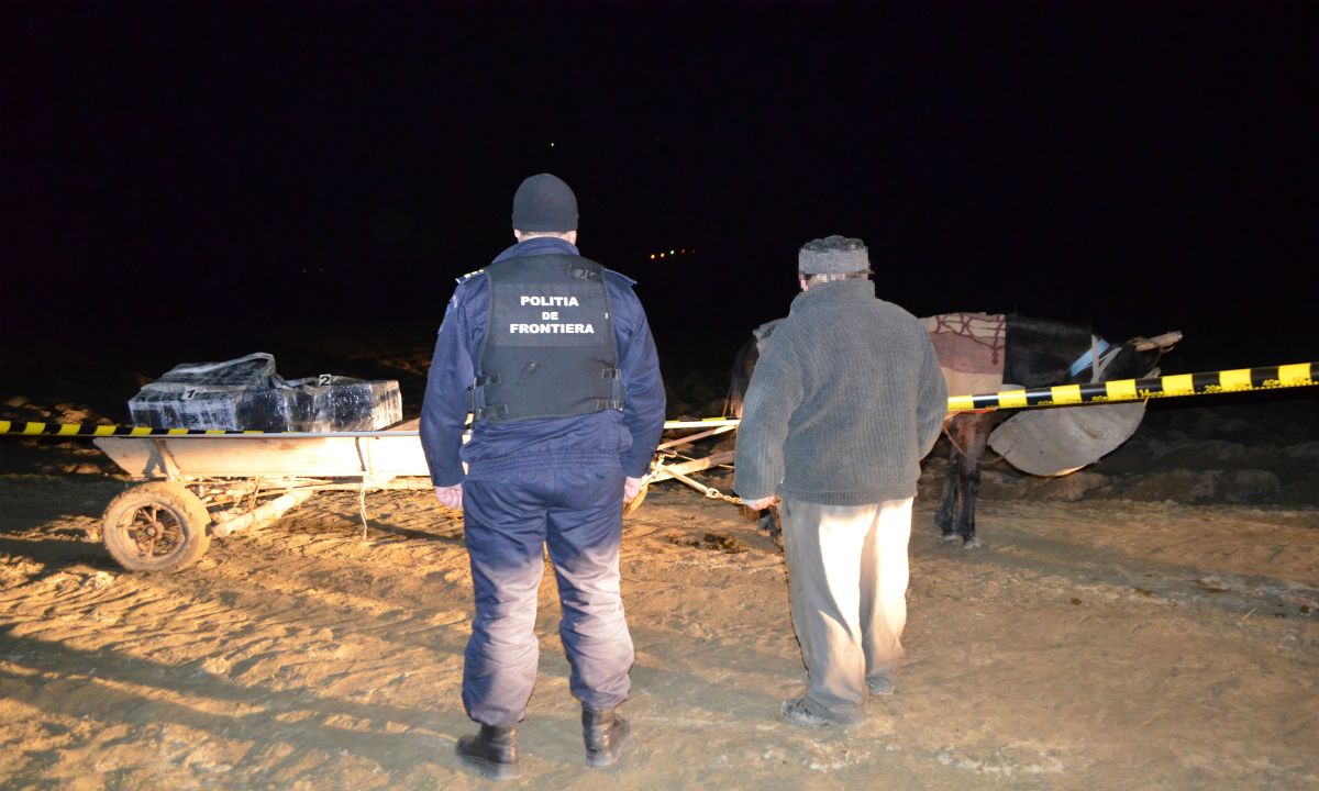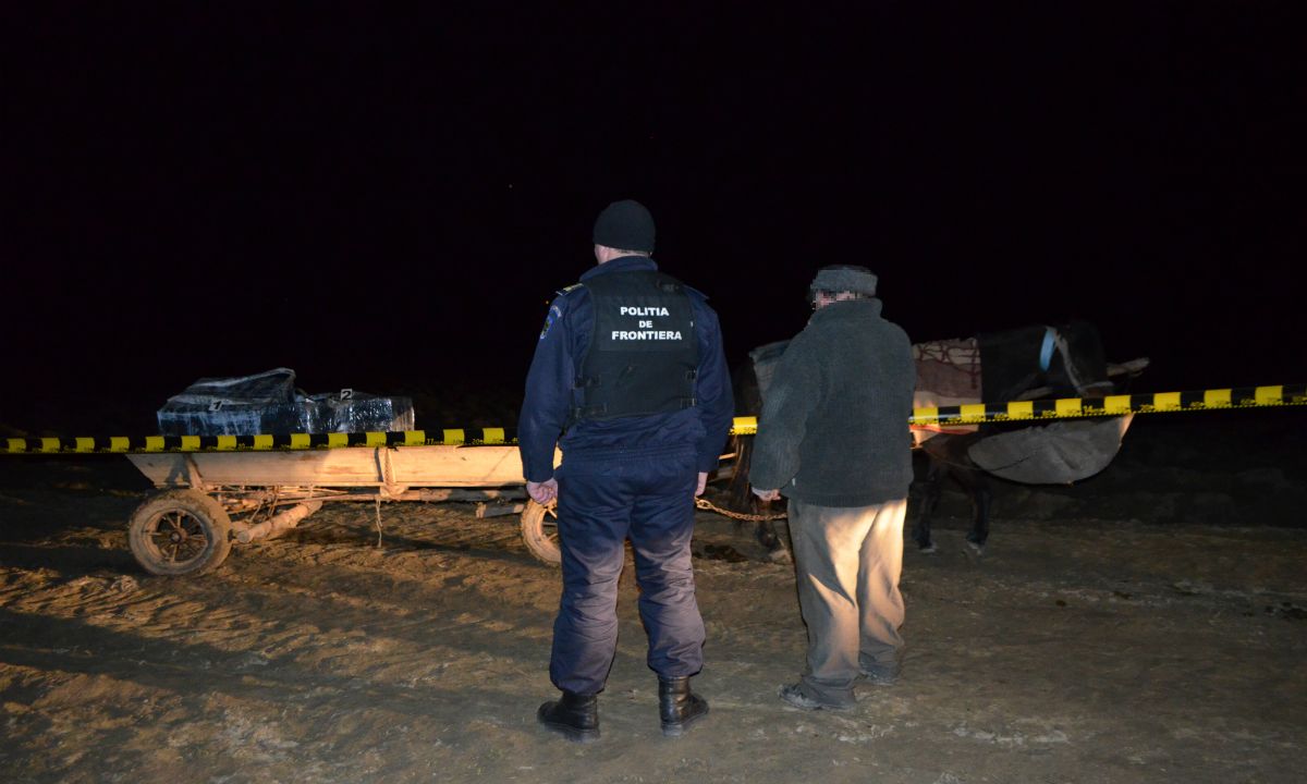 Astfel, în jurul orei 19.50, polițiștii de frontieră români au observat, cu ajutorul aparaturii de vedere pe timp de noapte, pe direcţia localităţii de frontieră Păltiniș, o persoană într-un atelaj hipo, cu care transporta două colete voluminoase. Imediat, poliţiştii de frontieră au declanșat o acțiune specifică în urma căreia au reținut persoana în cauză. Concomitent, un alt echipaj din cadrul aceluiași sector a reținut, în imediata apropiere, un tânăr, implicat în activitatea de contrabandă și care la vederea polițiștilor de frontieră a încercat să fugă.