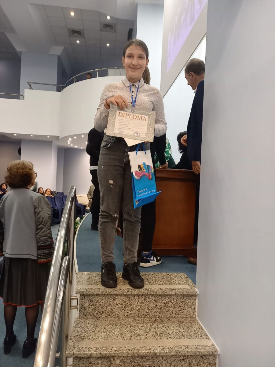 1. Mențiune ME - eleva Cronț C.C. Evelina-Mihaela, de la Liceul ”Dimitrie Cantemir” Darabani, profesor îndrumător - Chiriac Cristina