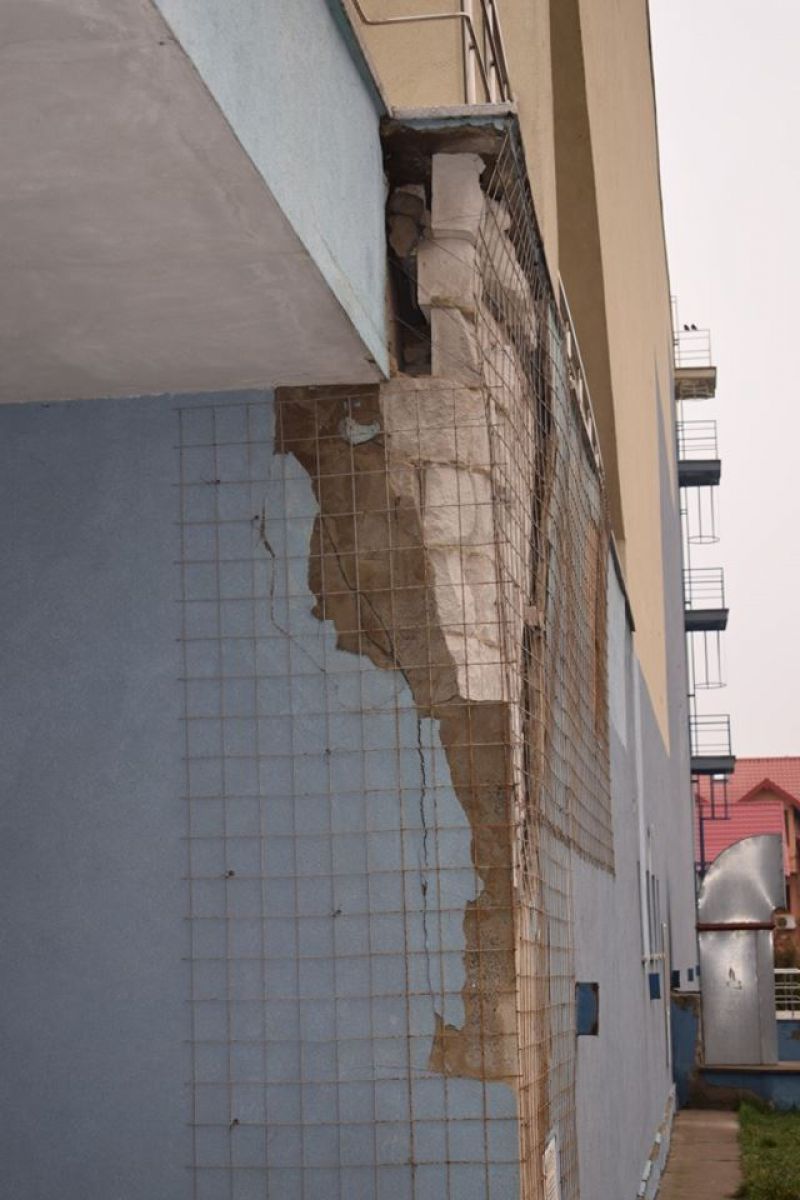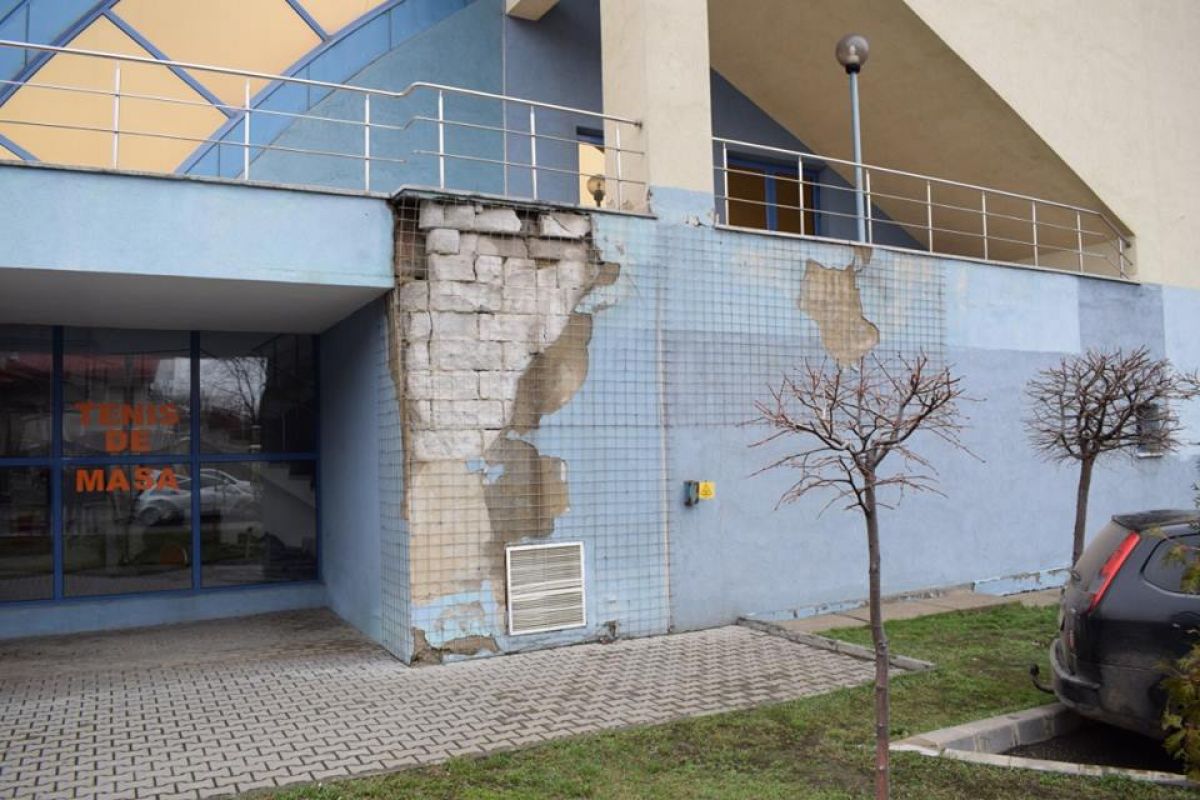 Expertiza de care este nevoie la Sala Polivalentă costă undeva la 132.000 de lei. Până când se vor ști toate intervențiile care trebuie făcute pentru repararea clădirii, părțile de unde se desprinde tencuiala au fost prinse cu plasă de sârmă.