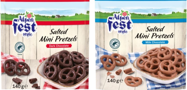 Este vorba de ALPENFEST Covrigi cu sare și ciocolată sortați, 140g.