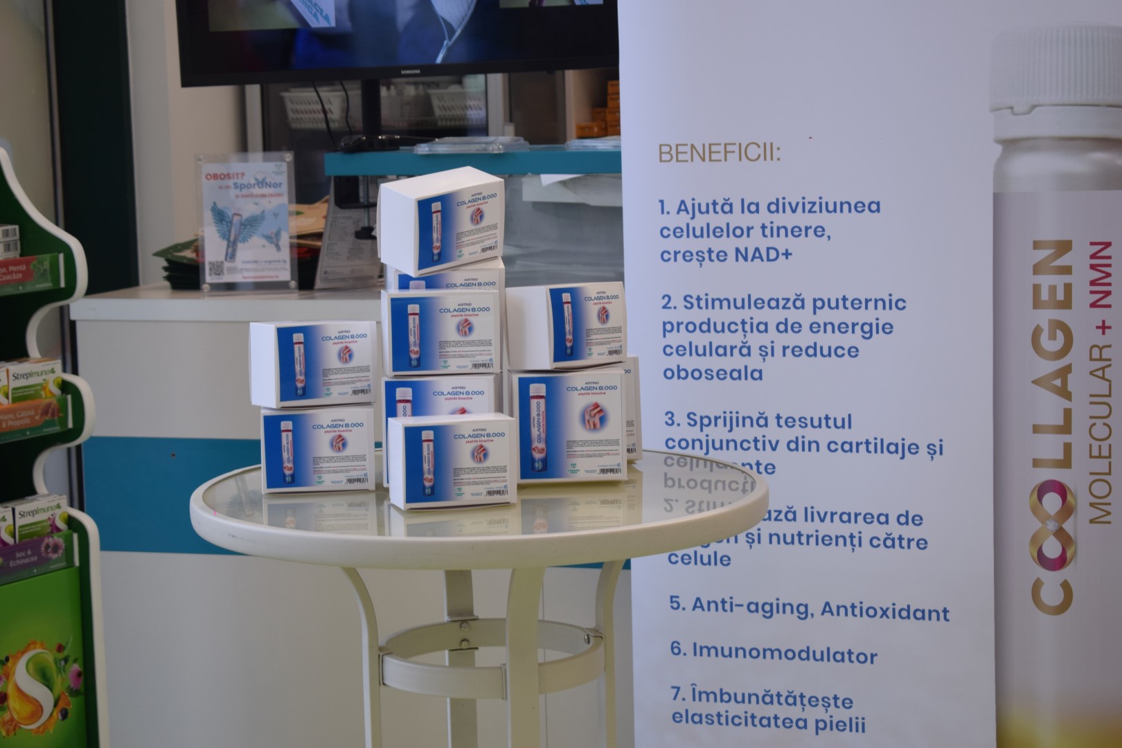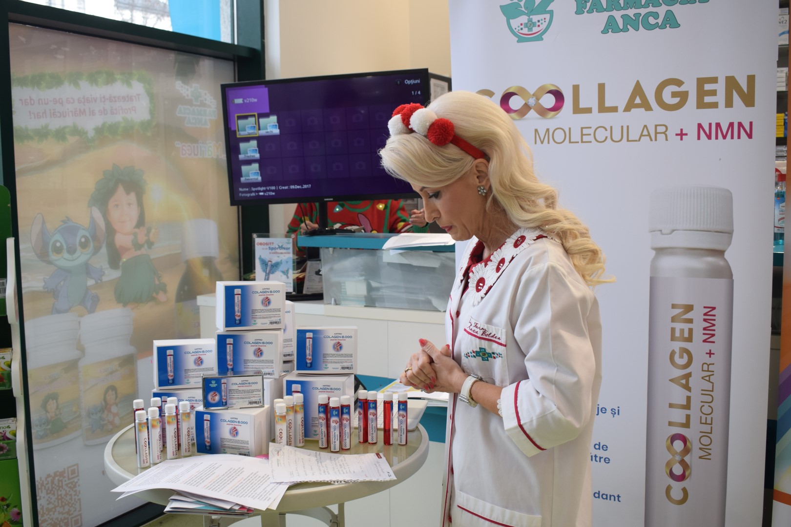 „Anul acesta am venit cu un produs nou, se numește Colagen Molecular îmbunătățit cu NMN. Acest colagen noi îl avem deja produs sub formă de capsule, dar prin studii s-a observat Colagen-ul lichid este mult mai bine absorbit în organism față de forma în capsule sau comprimate.”