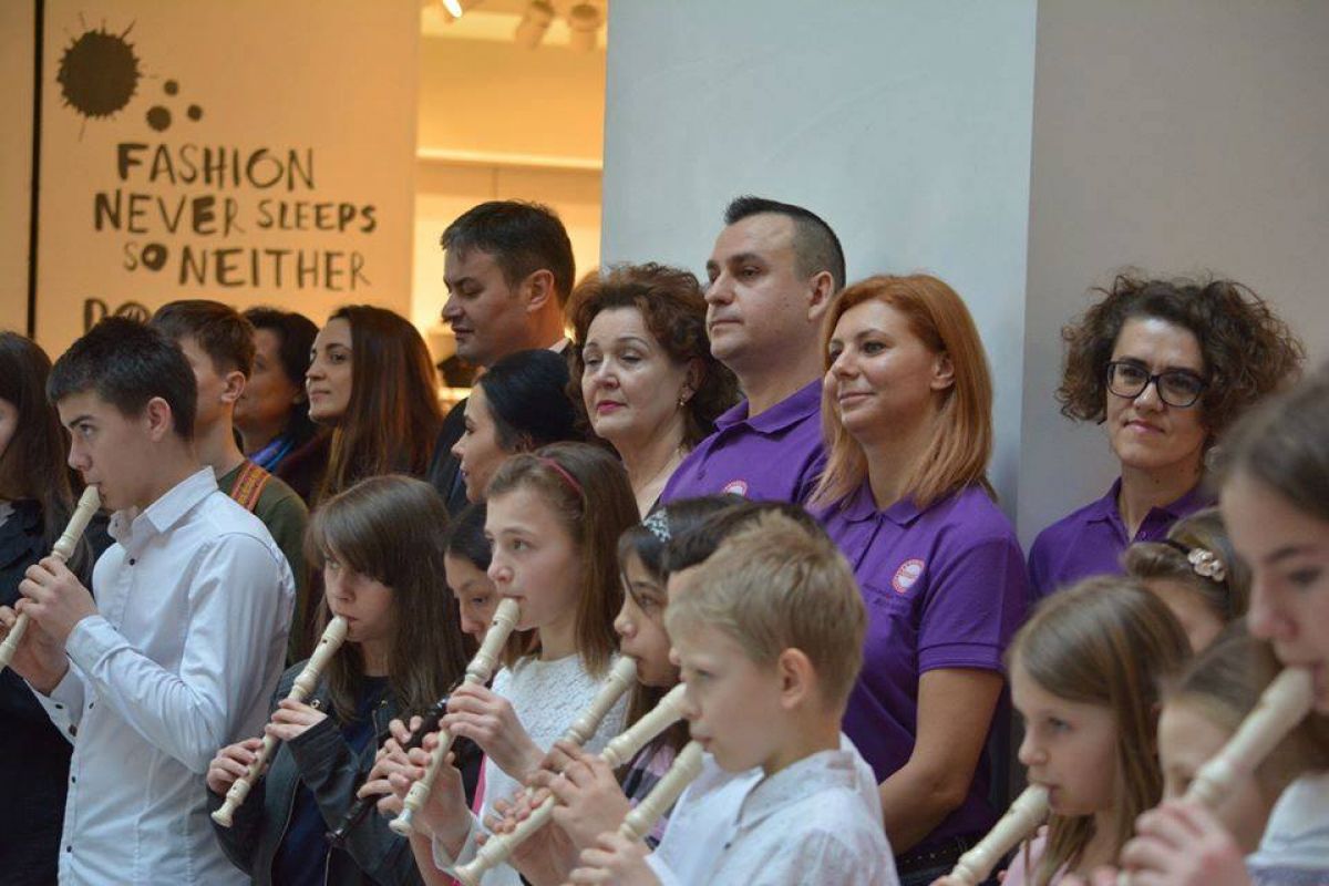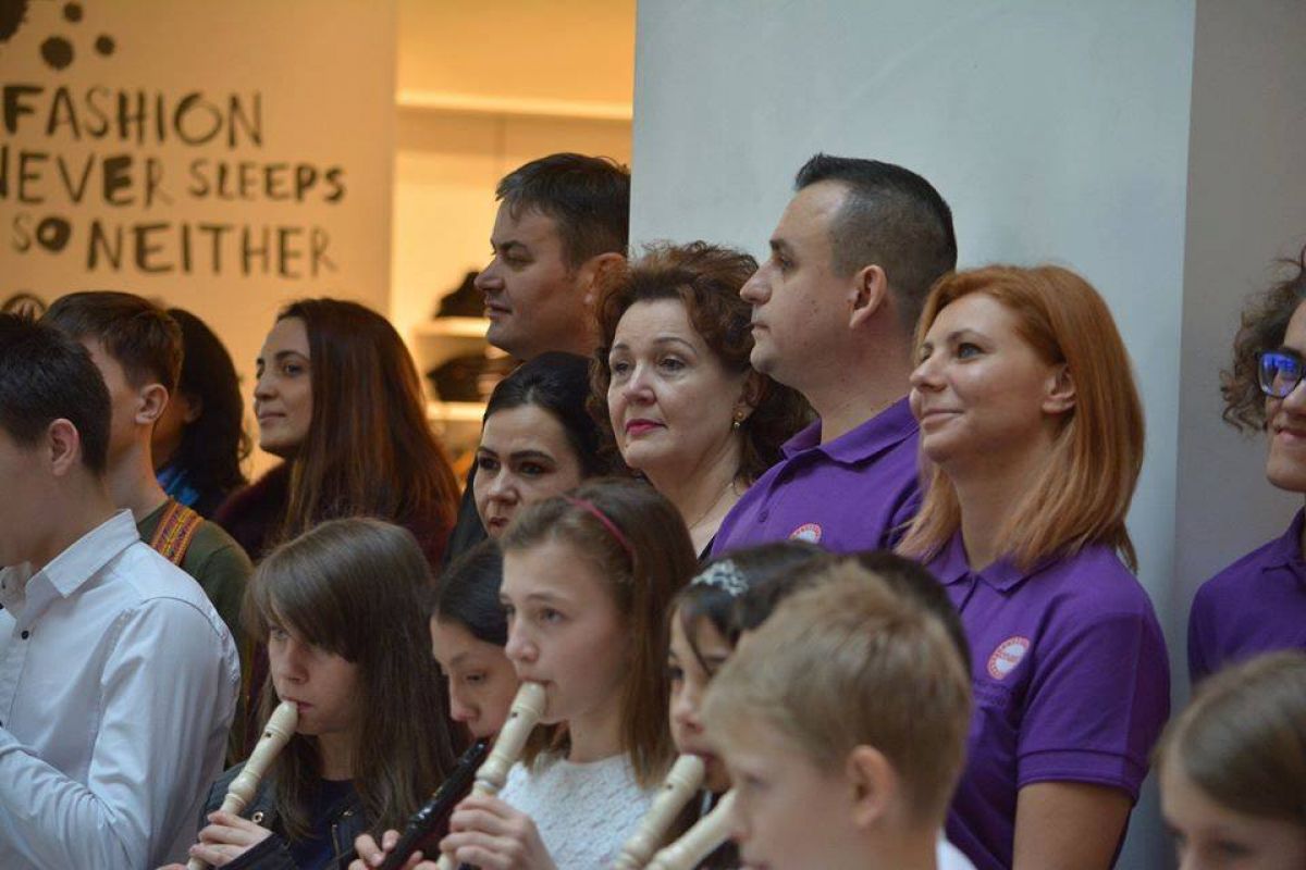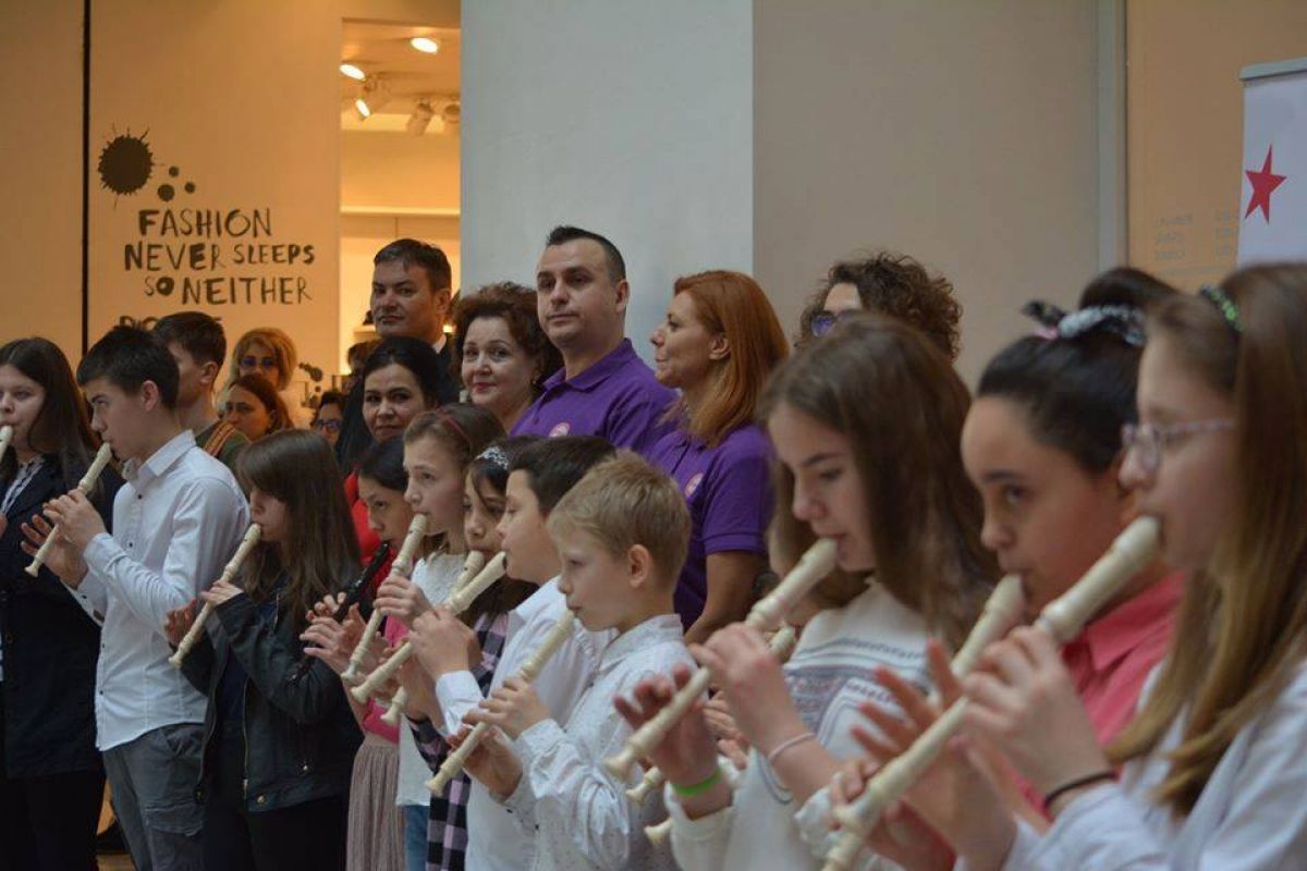 Zeci de instrumentiști ai Fundației ”Hand of Help” Botoșani au creat un moment magnific, menit să atragă atenția la propriu, botoșănenii aflați la acea oră în mall fiind impresionați de prezența micilor artiști.