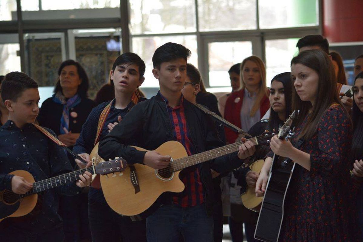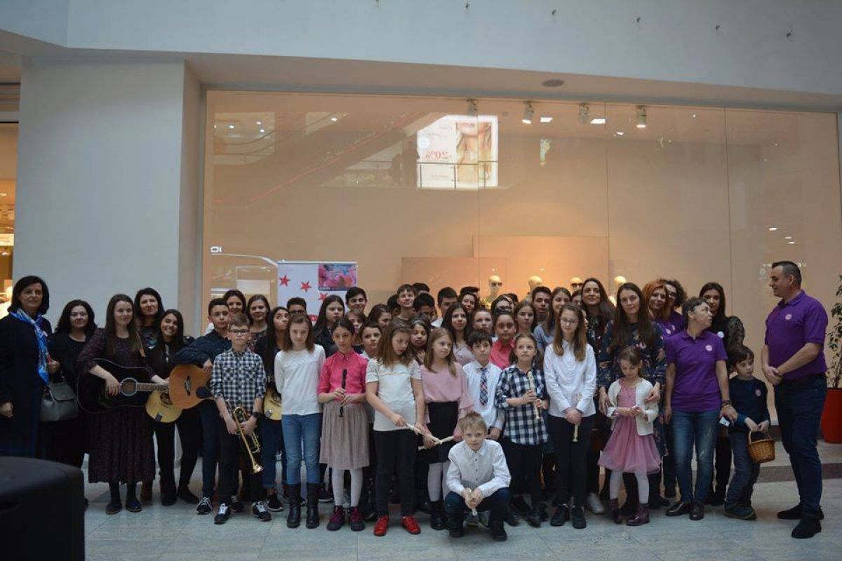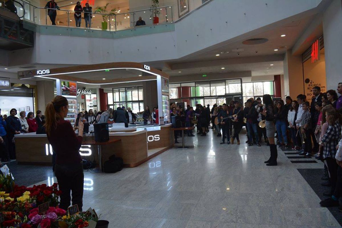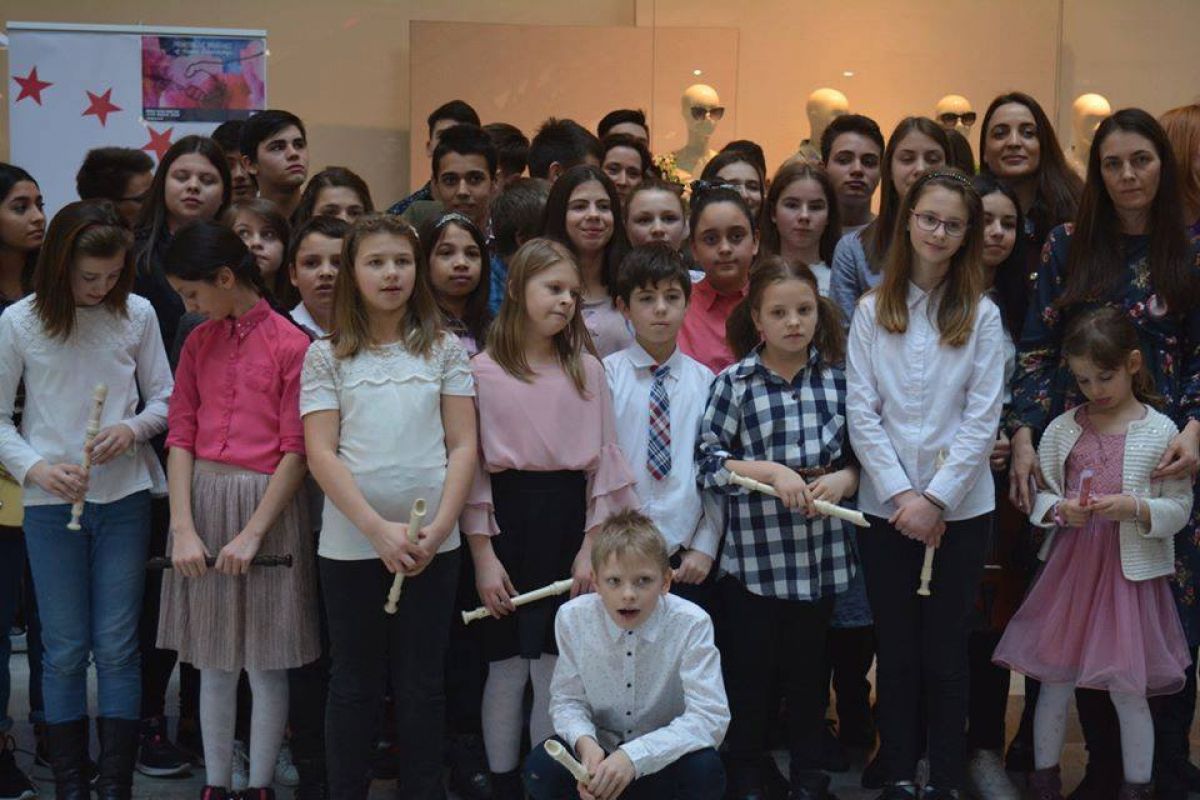 Zeci de instrumentiști ai Fundației ”Hand of Help” Botoșani au creat un moment magnific, menit să atragă atenția la propriu, botoșănenii aflați la acea oră în mall fiind impresionați de prezența micilor artiști.