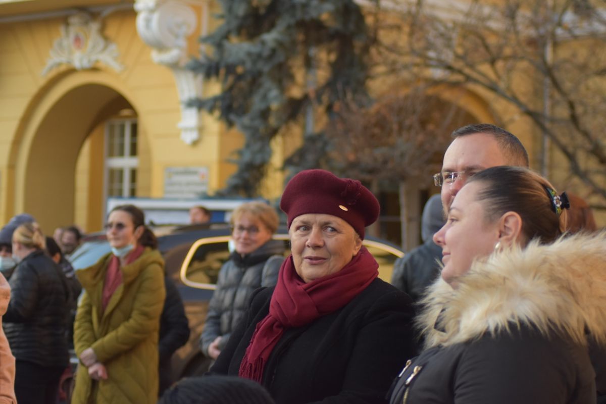 Înainte ca el să ia cuvântul, părintele Petru Chirvase, a cărui soție grav bolnavă de Covid a fost salvată anul trecut de medici, a binecuvântat mitingul.