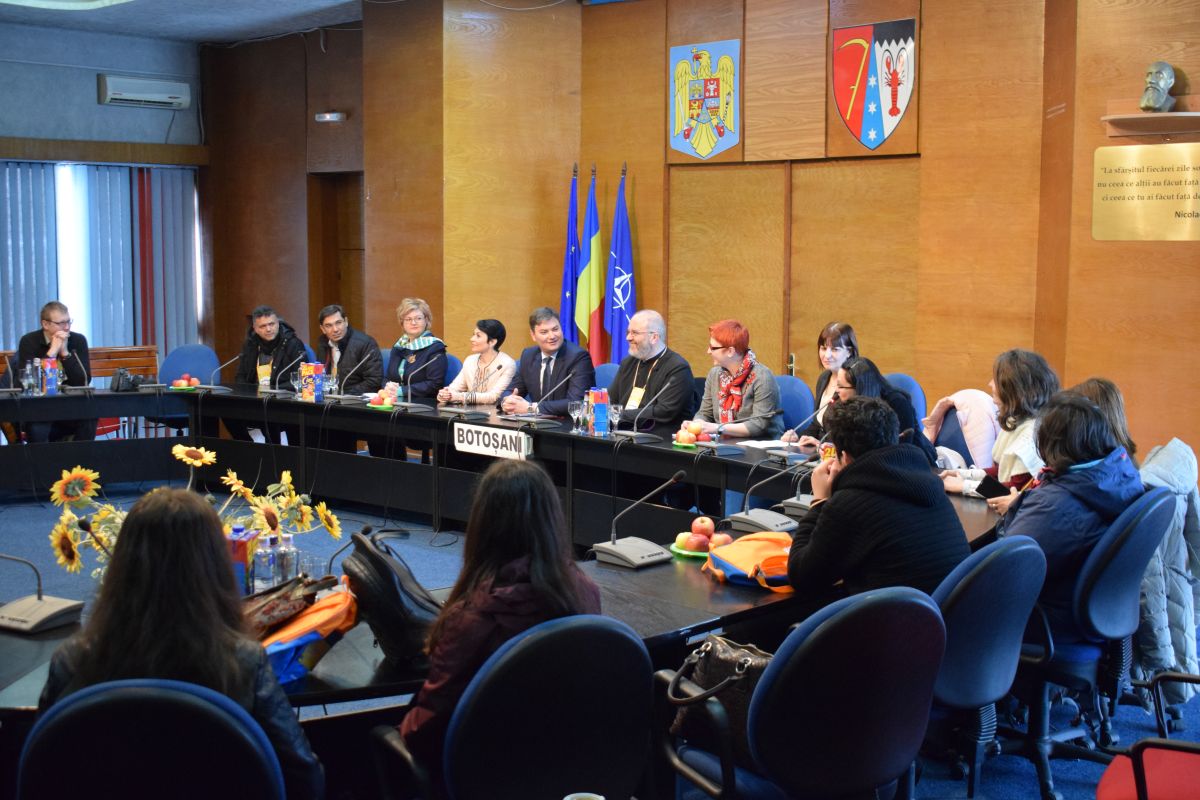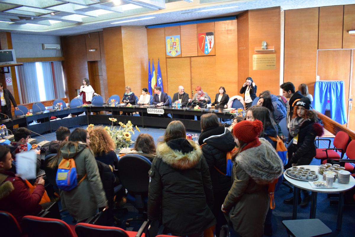 Şapte profesori şi 17 elevi din Germania, Turcia şi Italia au fost astăzi în vizită la Palatul Administrativ, însoţiţi de gazdele lor- patru profesori şi 14 elevi ai Seminarului Teologic „Sf. Ioan Iacob” din Dorohoi, în cadrul derulării proiectului „Erasmus+” de predare/ formare şi învăţare „Foreign languages, better life, perfect jobs”.
