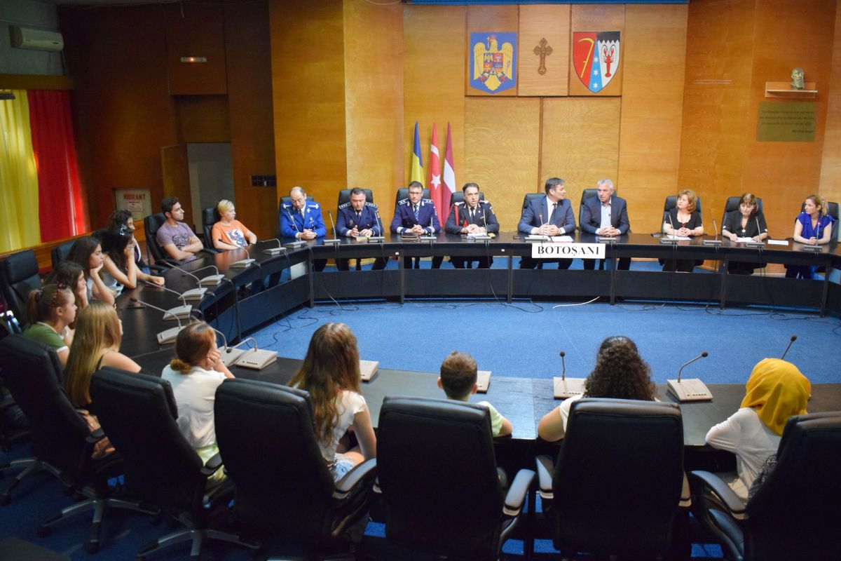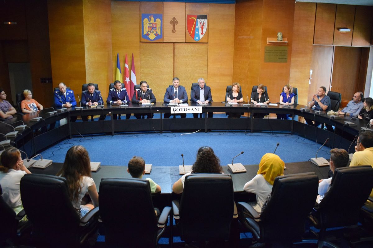 Prefectul Dan Şlincu, alături de preşedintele Consiliului Judeţean, Costică Macaleţi, şi de şefii structurilor locale ale Ministerului Afacerilor Interne, a avut onoarea de a primi elevii şi cadrele didactice din Turcia, Letonia dar şi de la Şcoala1 Albeşti, judeţul Botoşani.