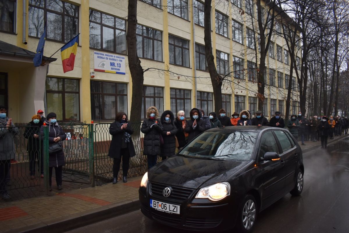 Când cortegiul funerar s-a apropiat de unitatea de învățământ au aplaudat, creând astfel o atmosferă asemănătoare sportivilor care părăsesc stadionul în ovațiile publicului.