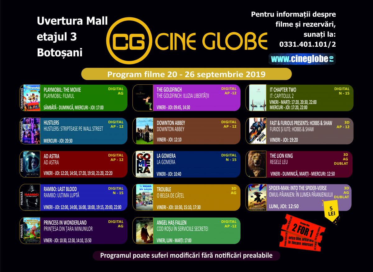 Vezi mai jos PROGRAMUL complet al filmelor care rulează la Cine Globe.