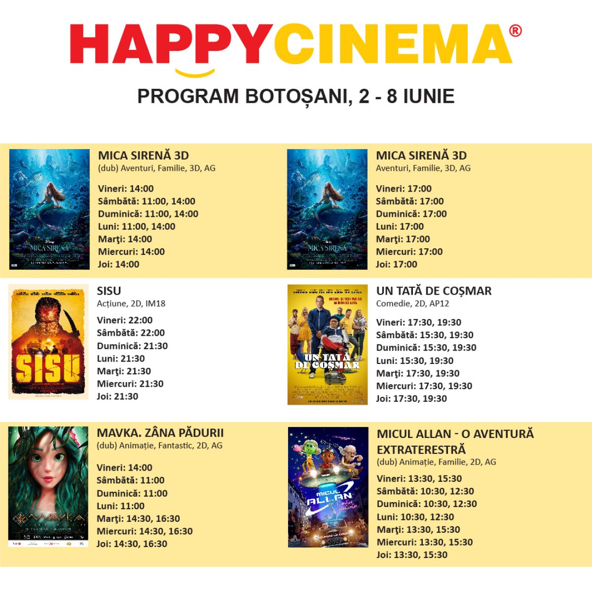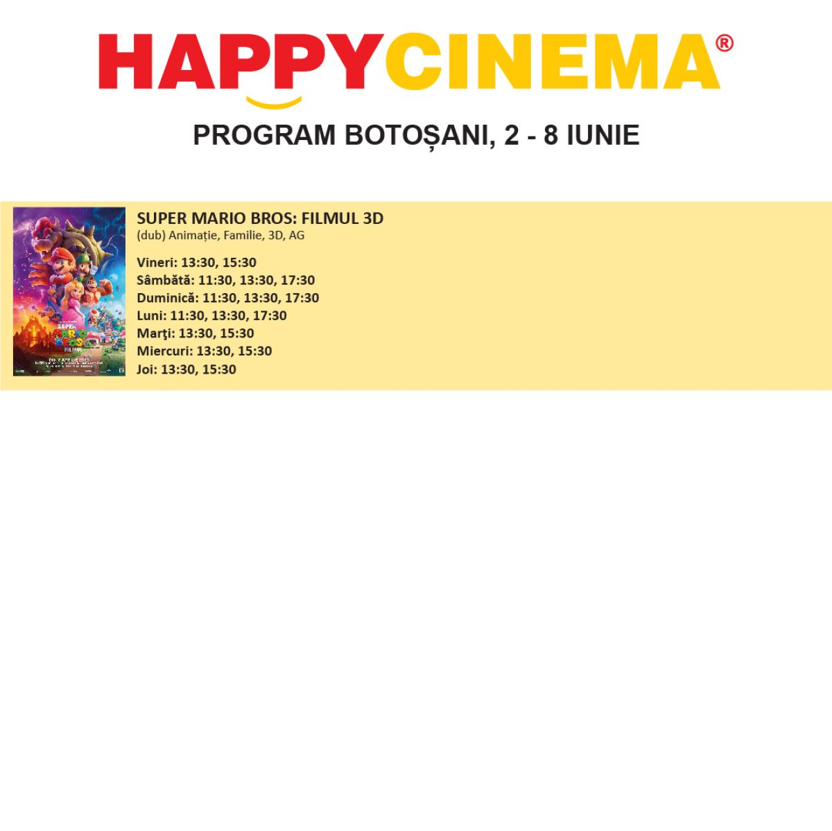 Cinefilii botoșăneni sunt așteptați la Happy Cinema pentru a urmări cele mai noi filme.