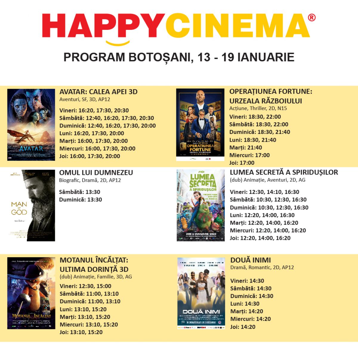 Cinefilii botoșăneni sunt așteptați la Happy Cinema.
