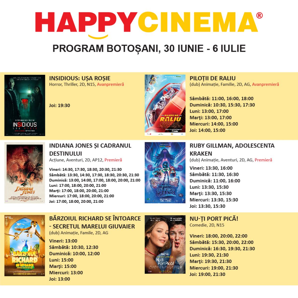 Cinefilii botoșăneni sunt așteptați la Happy Cinema pentru a urmări cele mai noi filme.