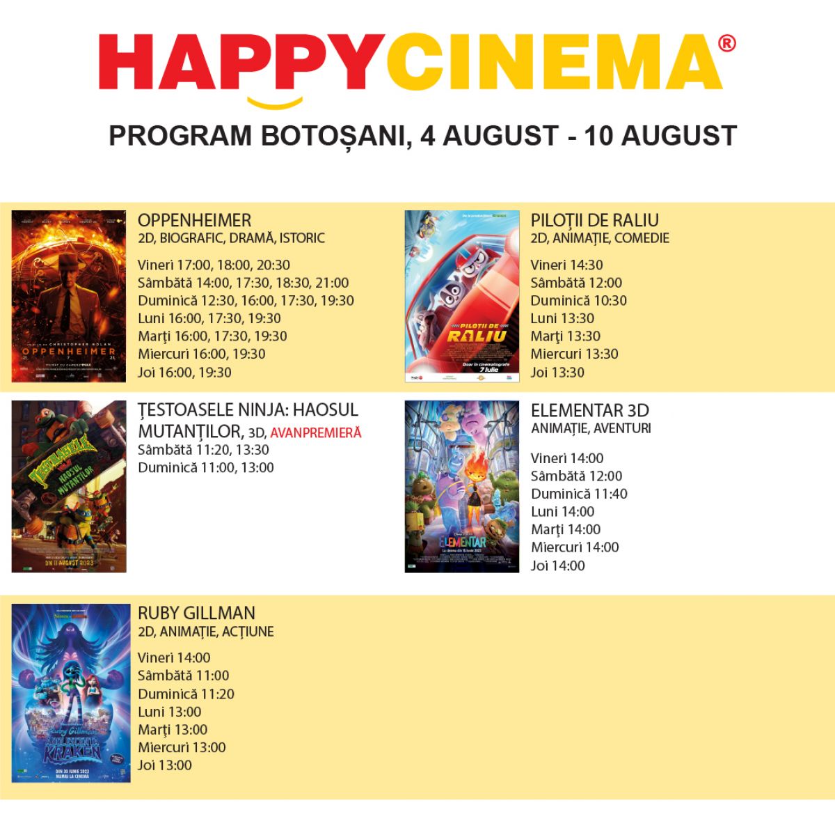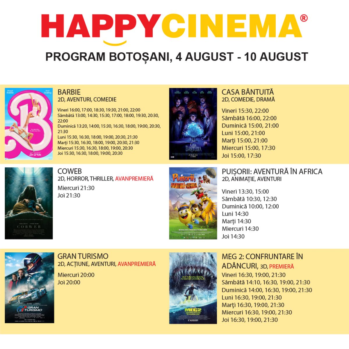 Cinefilii botoșăneni sunt așteptați la Happy Cinema pentru a urmări cele mai noi filme.