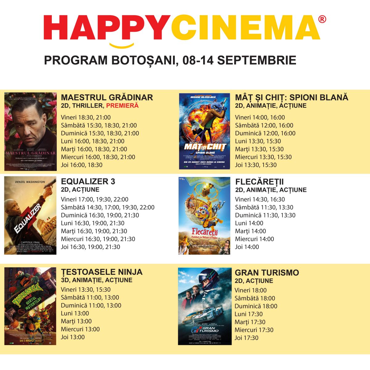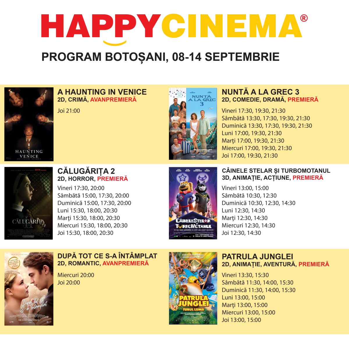 Cinefilii botoșăneni sunt așteptați la Happy Cinema pentru a urmări cele mai noi filme.