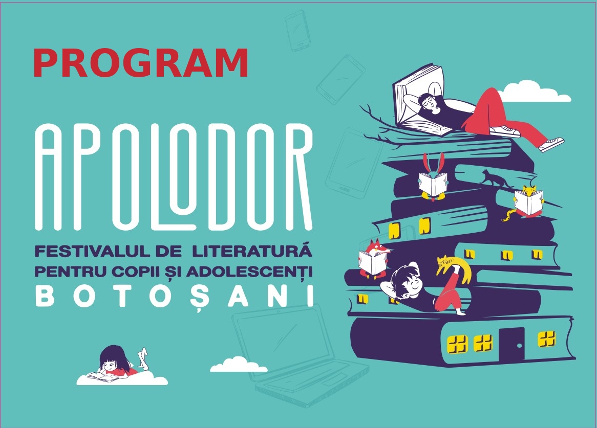 Festivalul APOLODOR aduce în Botoșani patru zile de literatură, arte vizuale, ateliere și întâlniri cu scriitori contemporani, ilustratori și critici literari. Programul cuprinde evenimente dedicate elevilor, părinților, publicului larg și profesioniștilor din domeniul educației și culturii.