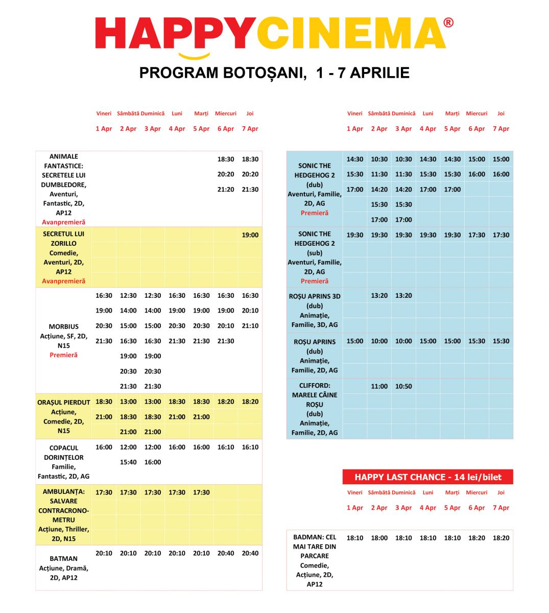 Filme pentru întreaga familie, începând de vineri, la Happy Cinema Botoșani.