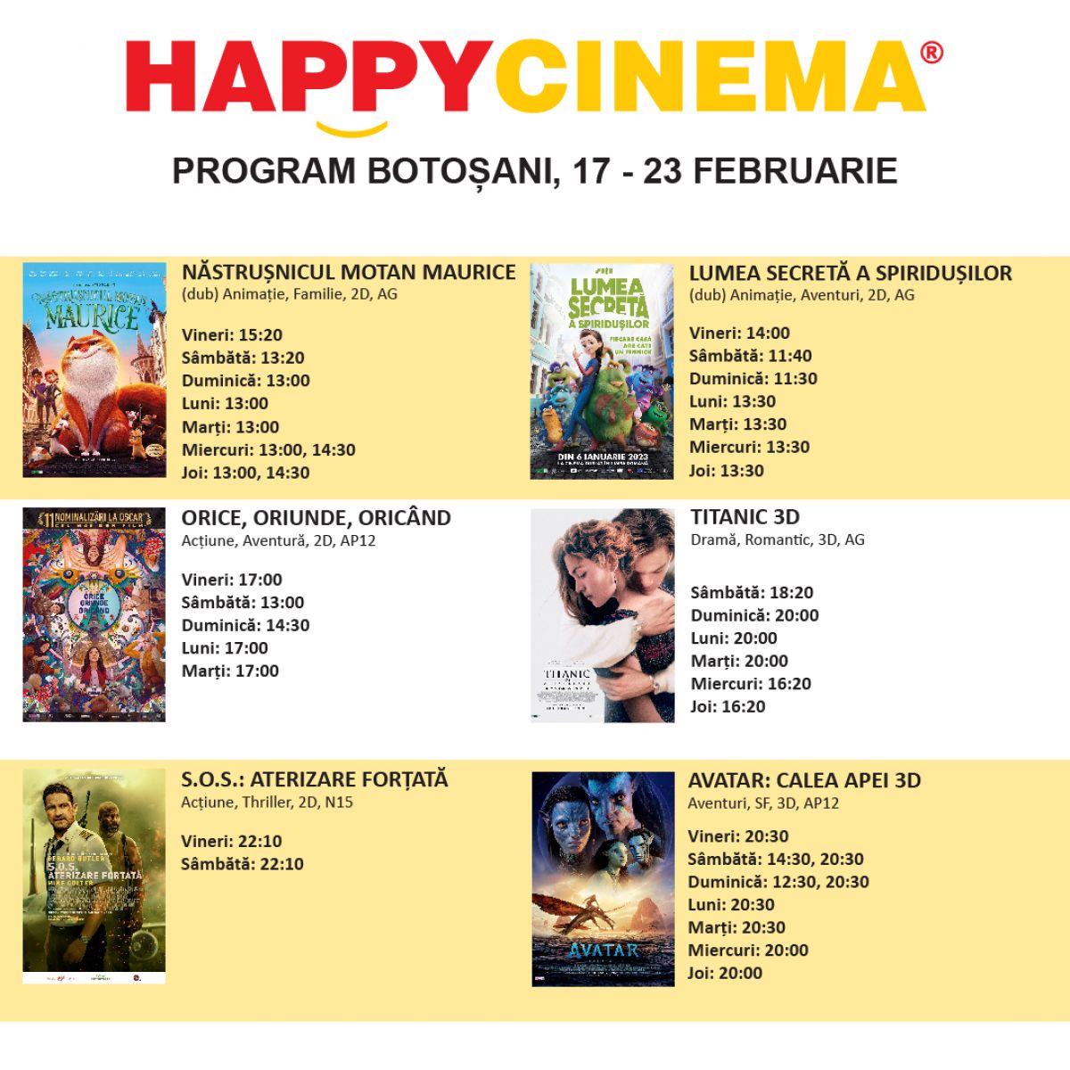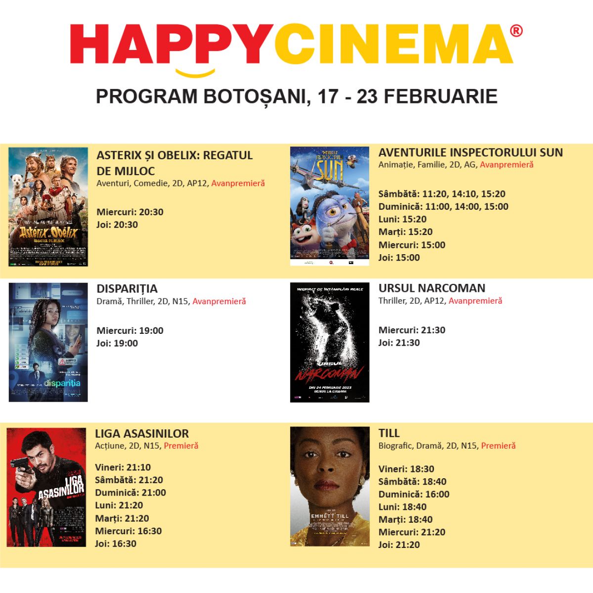 Avanpremiere, premiere, filme pentru cei mari și pentru cei mici, începând de astăzi, 17 februarie, la Happy Cinema Botoșani.