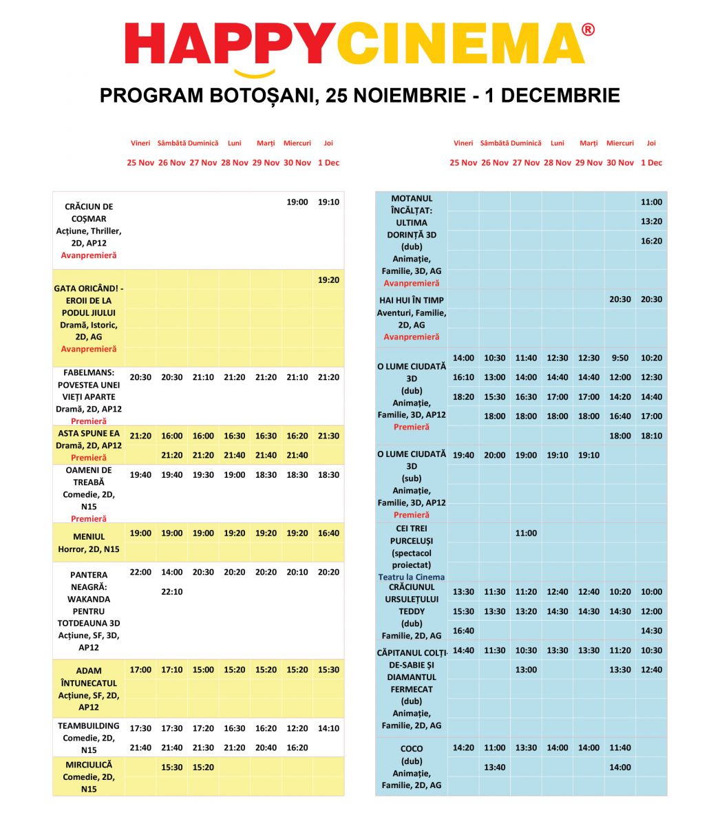 Filme pentru doritorii de aventuri, dar și comedii, romantice sau istorice la Happy Cinema Botoșani, în săptămâna în care românii sărbătoresc ziua națională.