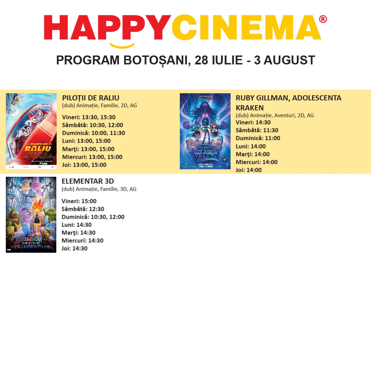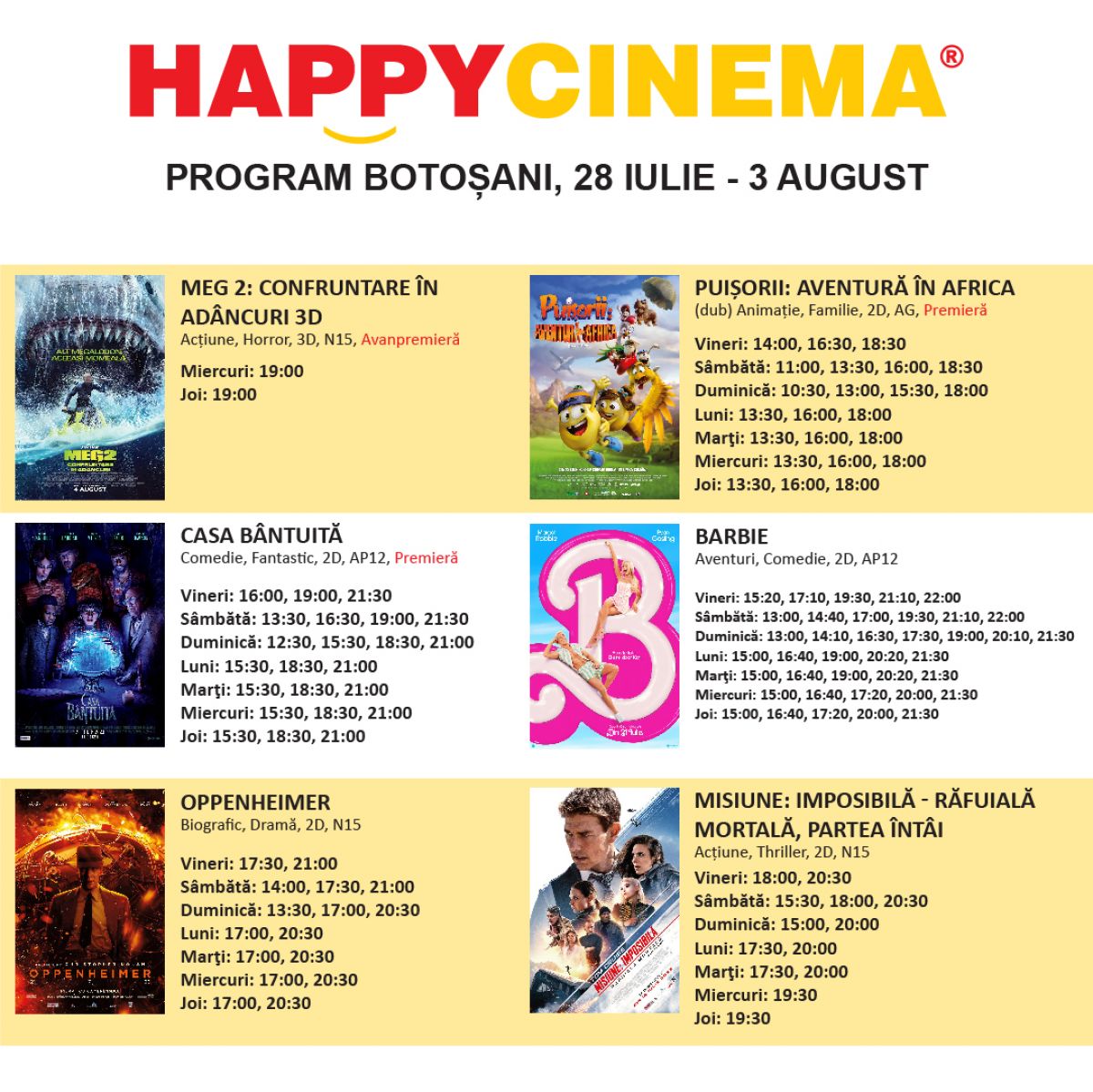 Cinefilii botoșăneni sunt așteptați în sala Happy Cinema, pentru a urmări cele mai noi filme.