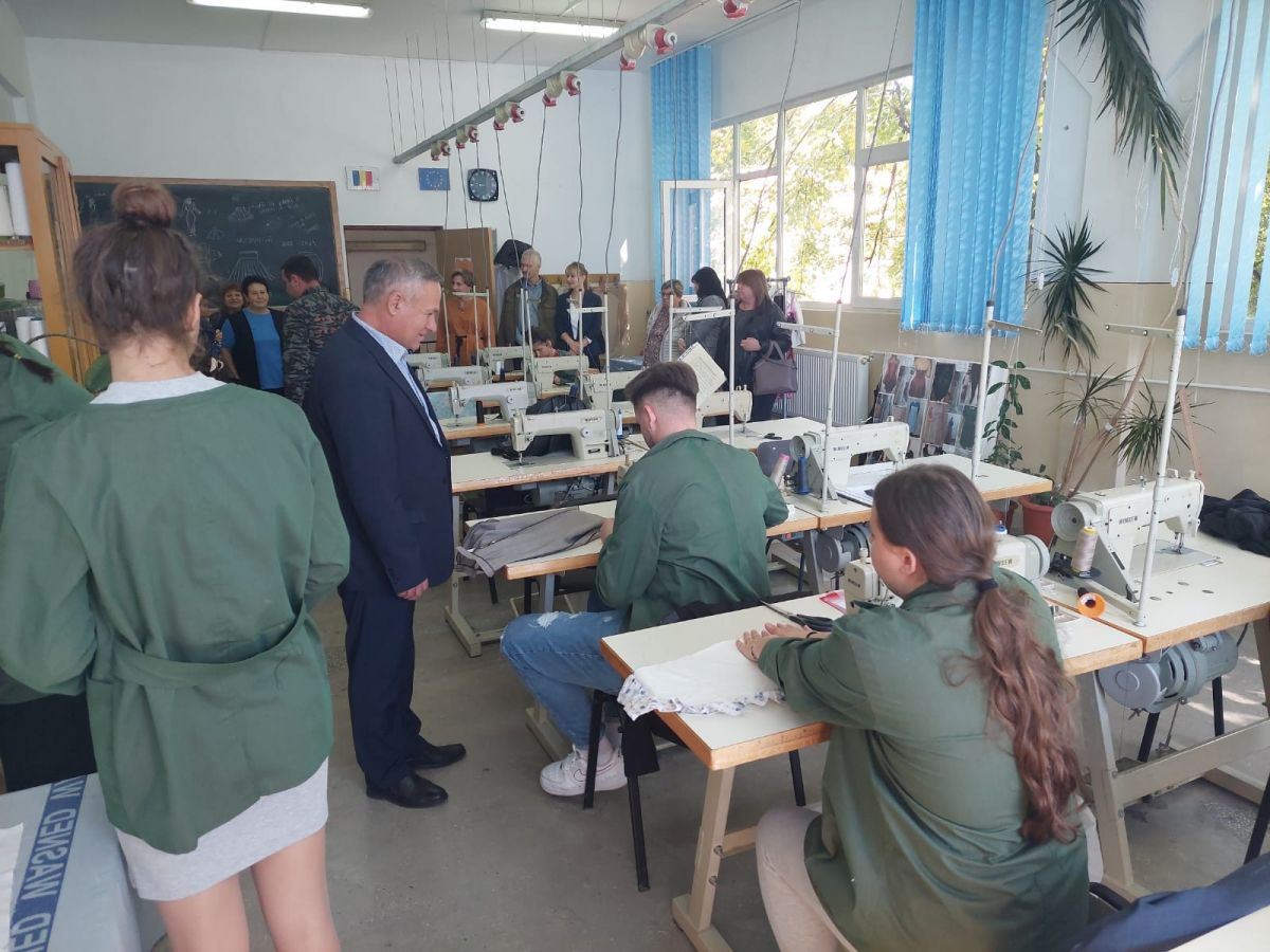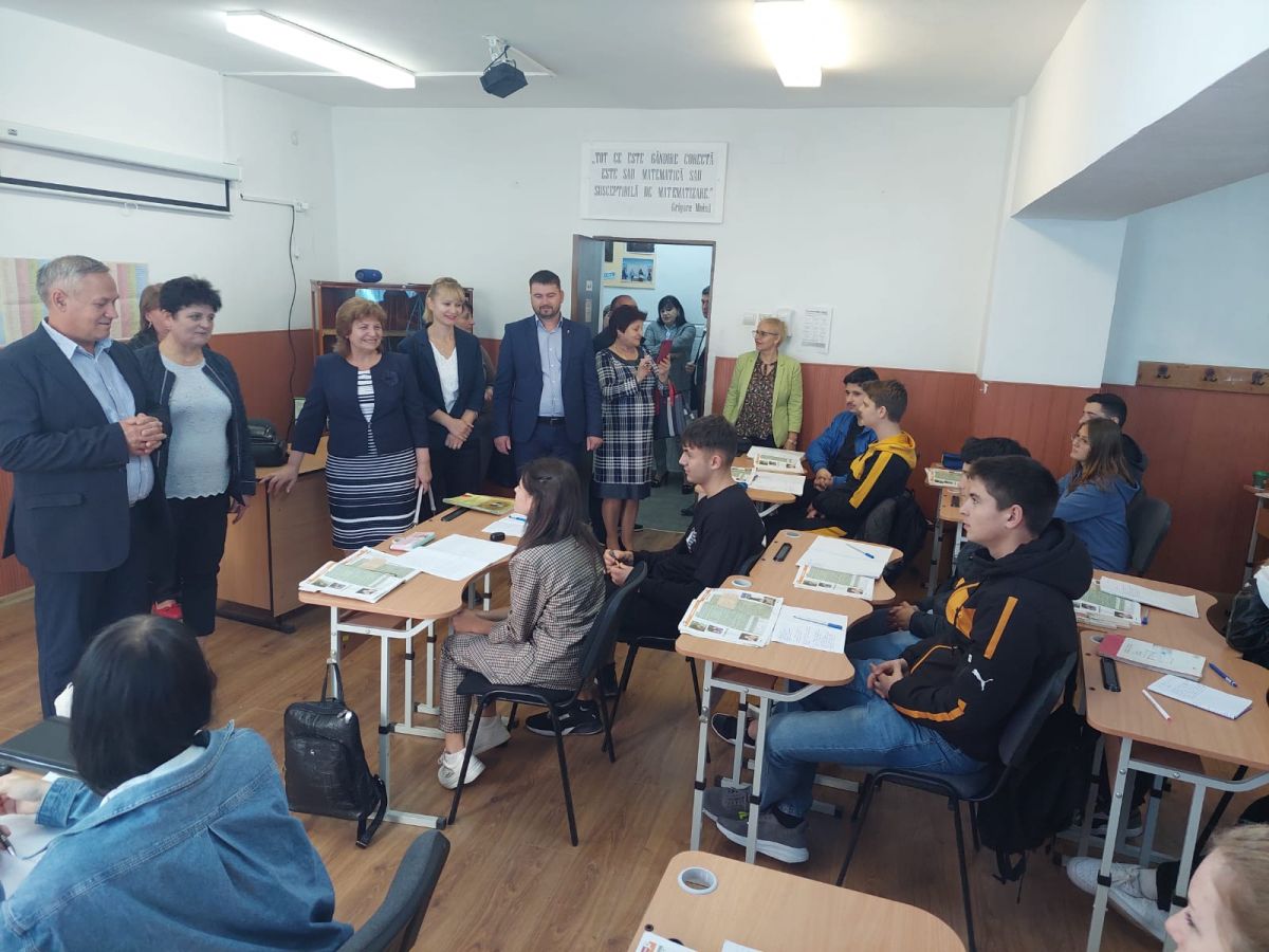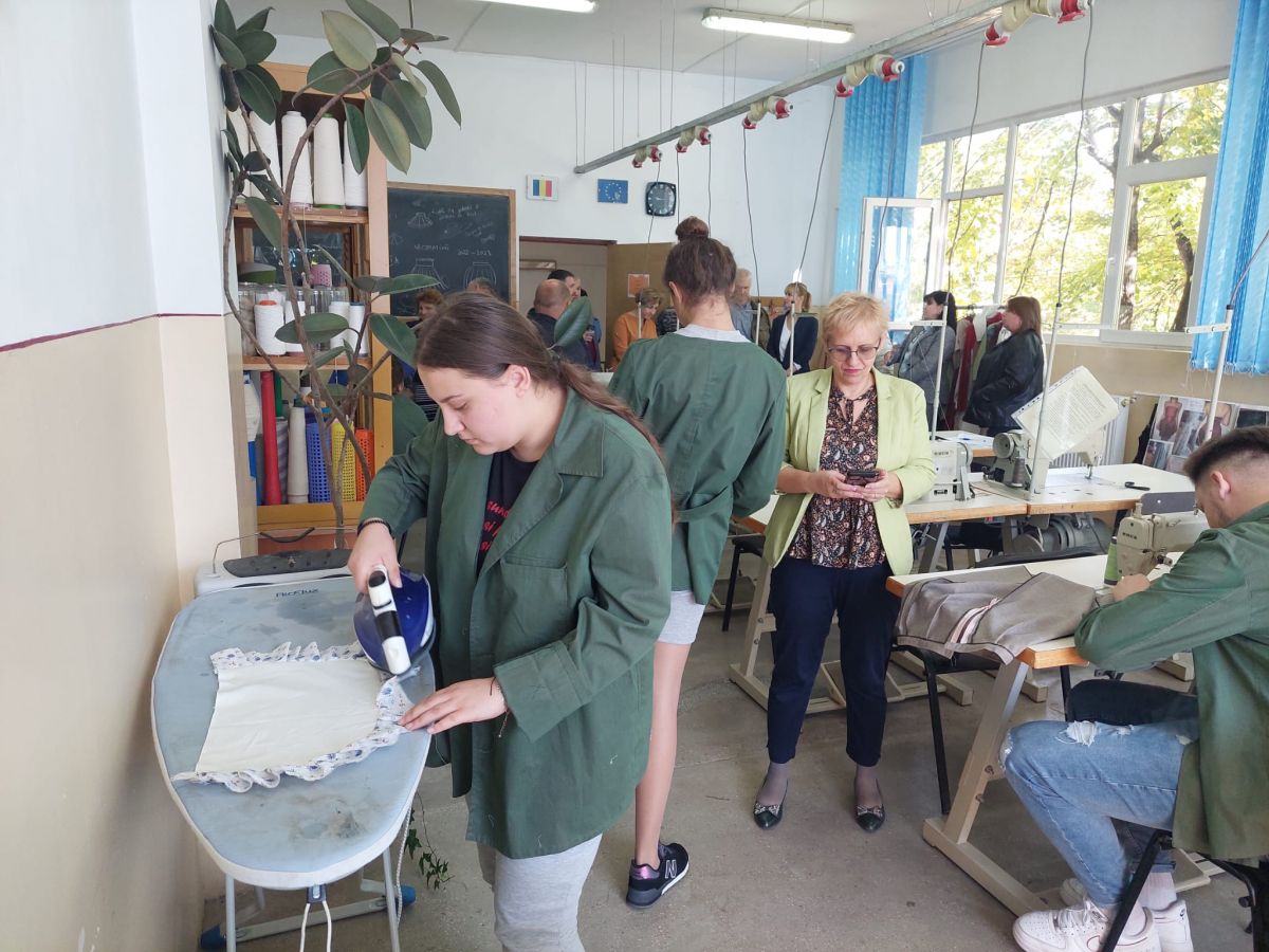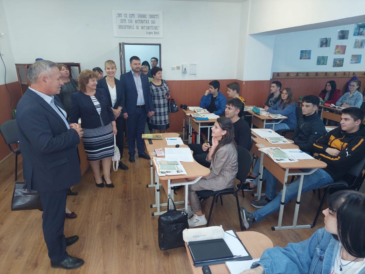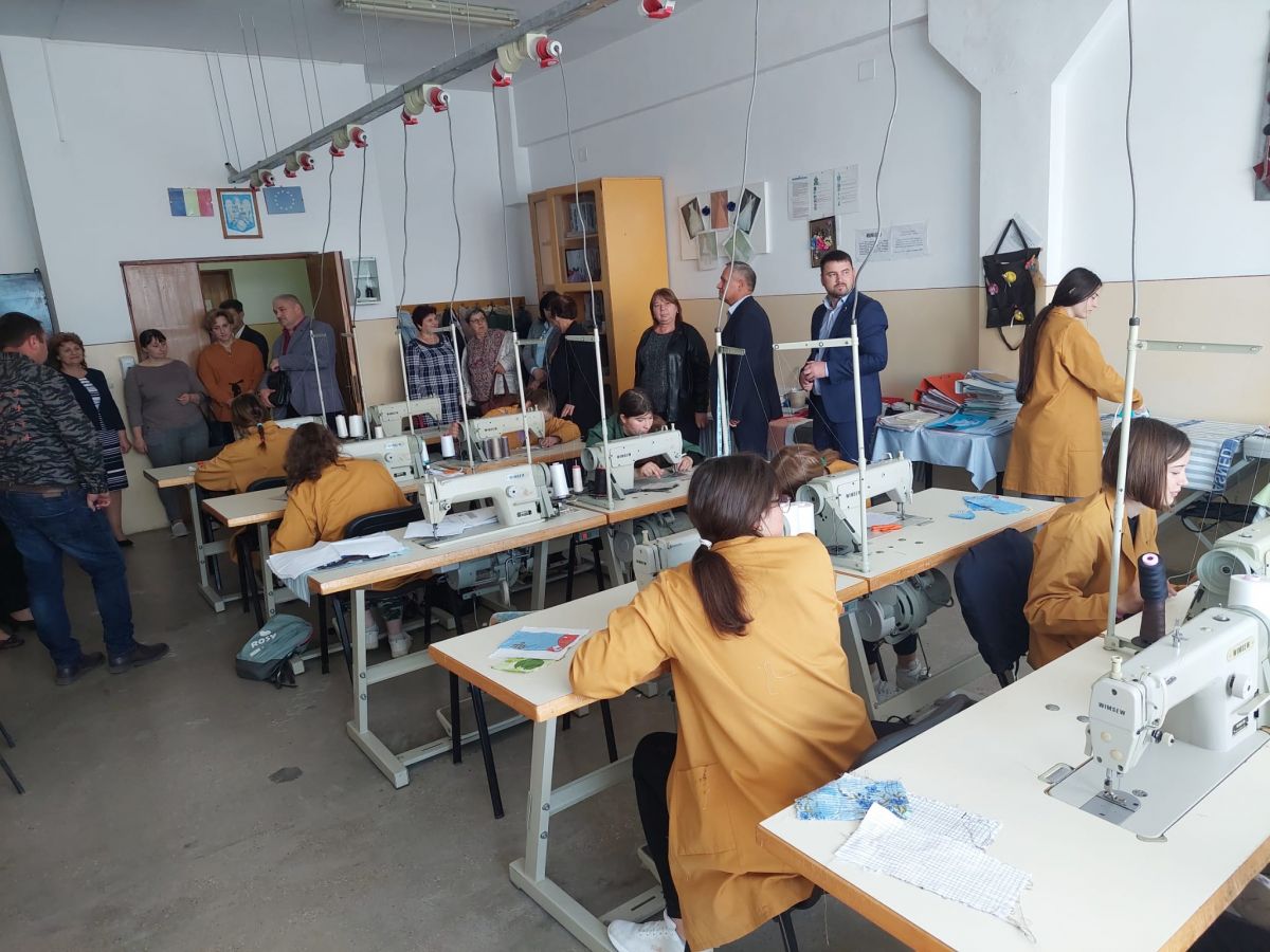 În cadrul schimbului de experiență cu Liceul ”Alexandru cel Bun” Botoșani, partenerii din Republica Moldova – directori, profesori, primari au vizitat spațiile școlare ale liceului, dotările atât pentru orele de cultură generală, cât și pentru domeniul Industrie textilă și pielărie din atelierele școlare și laboratoarele tehnologice, au realizat scurte asistențe la orele de teorie și instruire practică, au purtat discuții cu elevii și cadrele didactice, au împărtășit bunele practici și experiențele proprii.