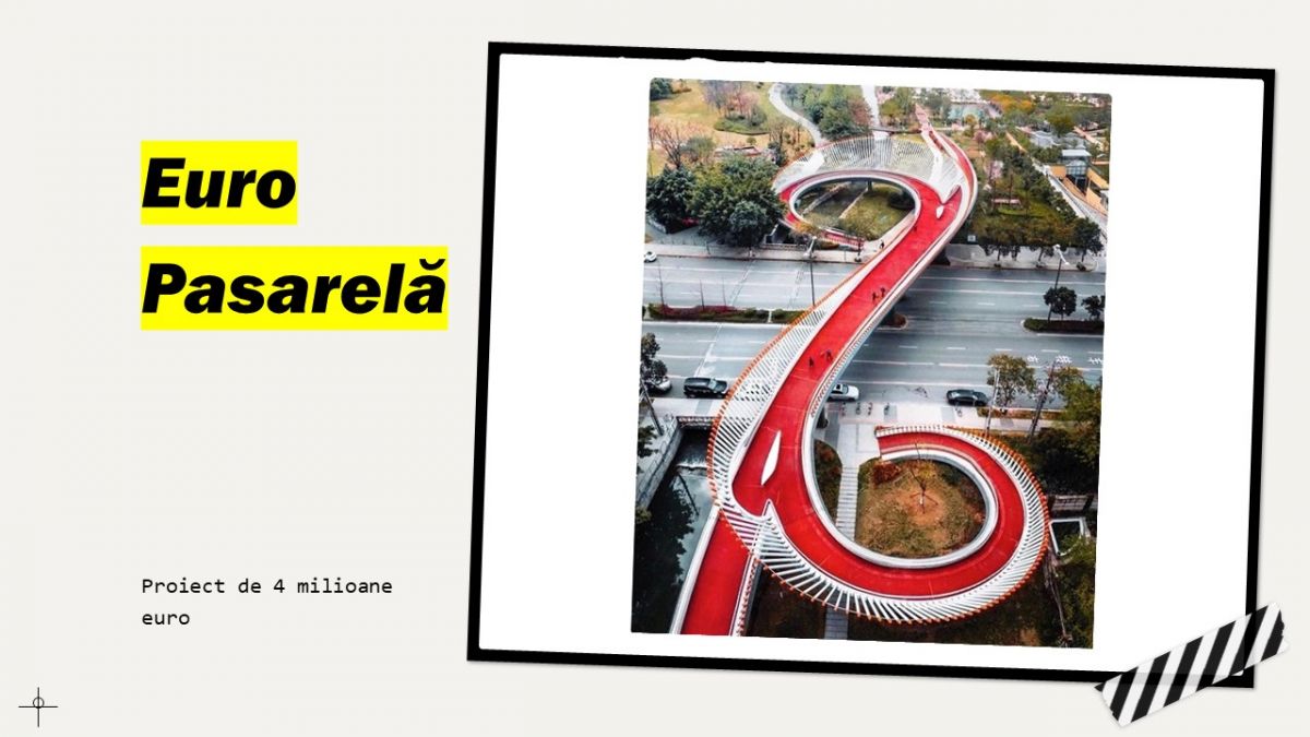 ”Avem posibilitatea să o finanțăm cu fonduri europene și să o facem într-un mod cu care să ne mândrim. Pasarela va fi plasată la o înălțime considerabilă față de drumul național, condiții care vor fi puse cu siguranță de către cei de la Drumuri Naționale pentru traficul greu. Este o pasarelă destul de serioasă, iar acesta este conceptul făcut într-un mod inovativ. Mai avem și alte proiecte prin fonduri europene și aș vrea să facem referire la viitorul POR, unde avem o prealocare de 58 de milioane de euro, pe diverse priorități, unul dintre aceste proiecte fiind pasarela”,